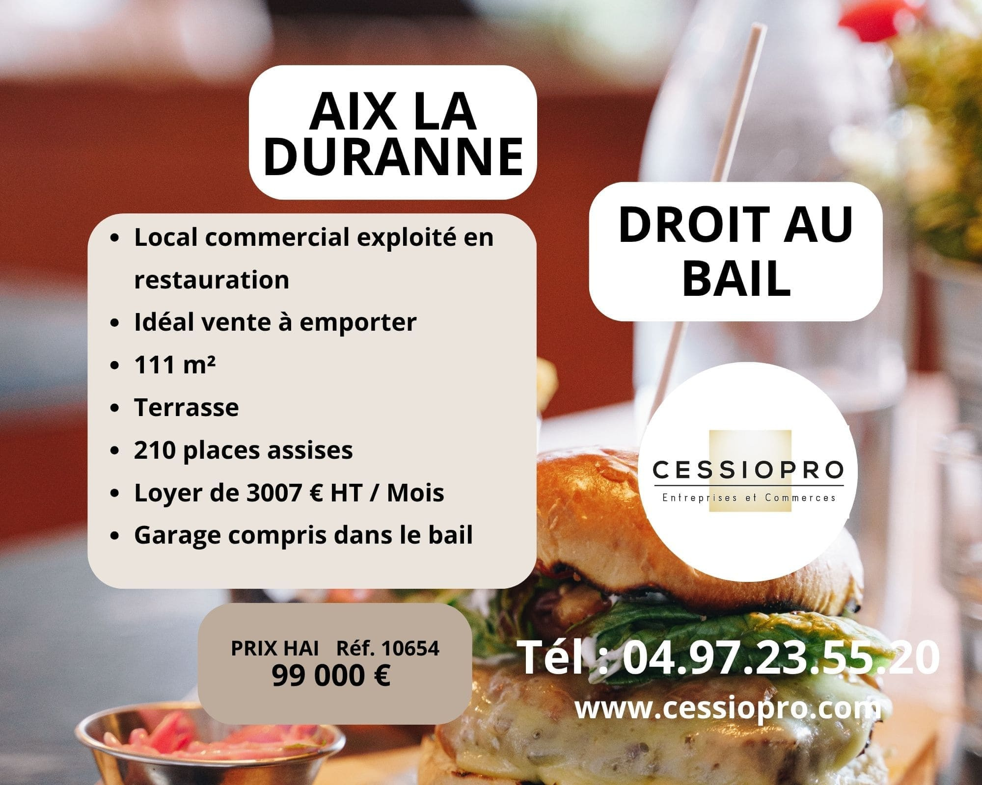 AIX LA DURANNE - À vendre, droit au bail d'un local commercial exploité en restauration, actuellement inactif. Situé sur une jolie esplanade très fréquentée, bénéfi...