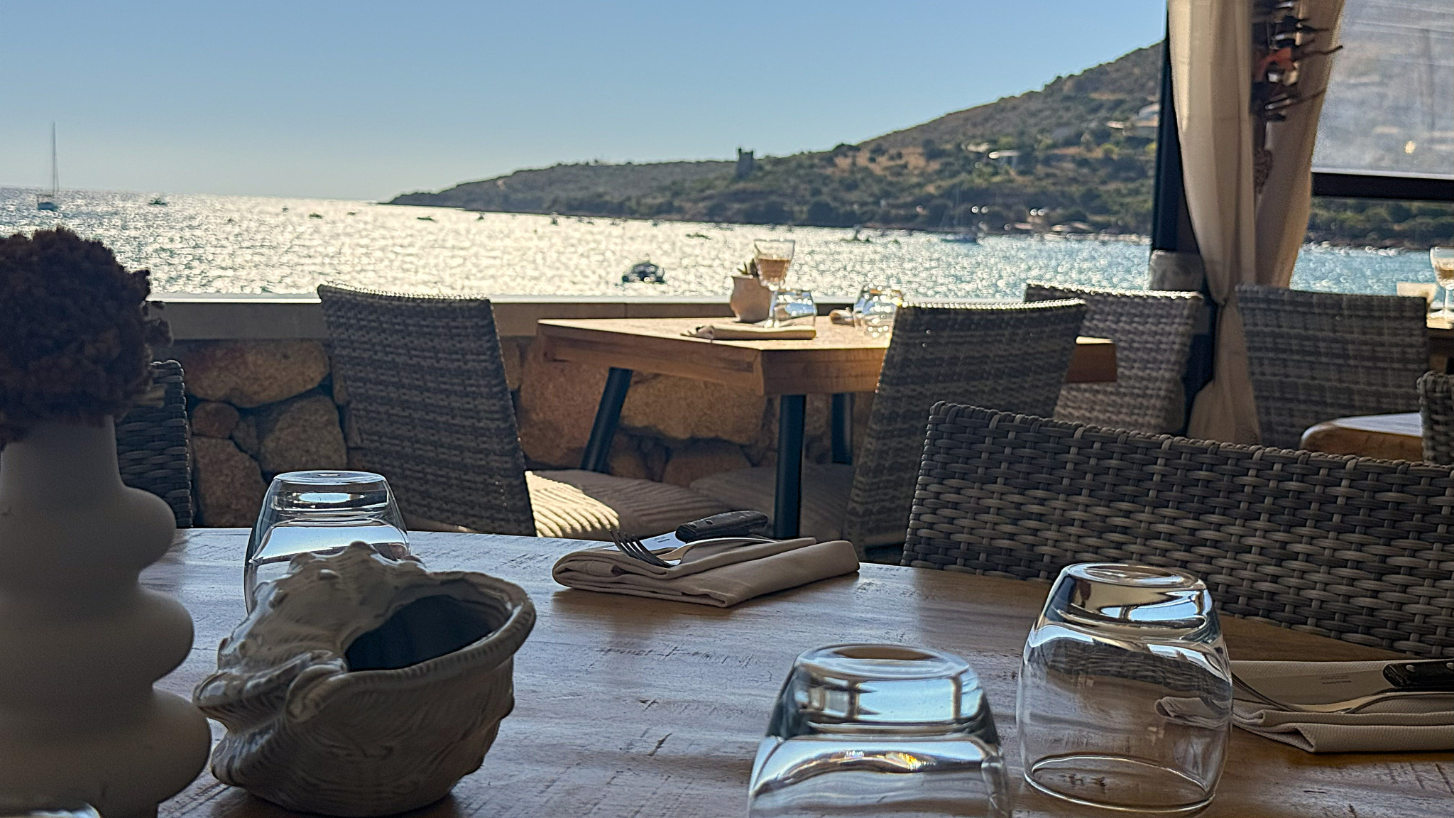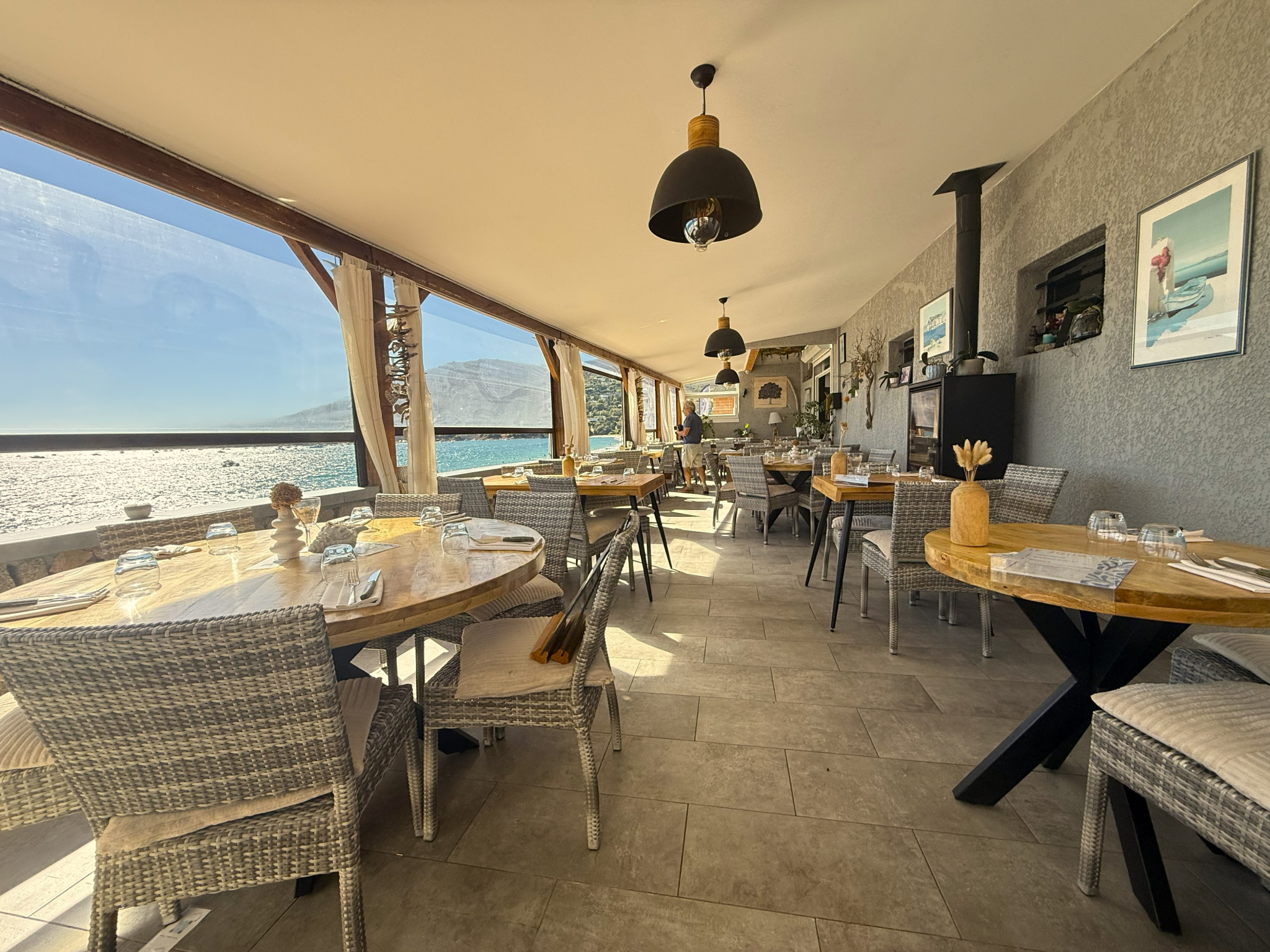 Vue mer panoramique exceptionnelle pour ce restaurant pied dans l'eau très joliment décoré.