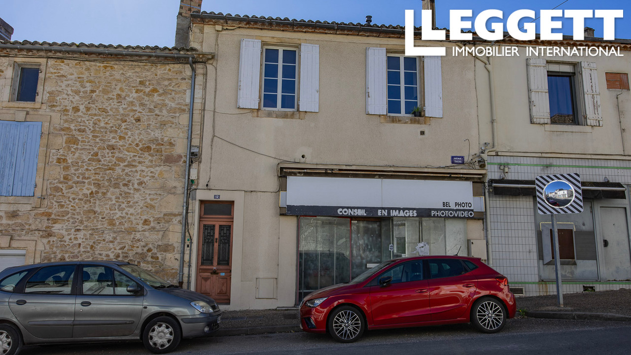 A43514SGU47 - Local commercial en rez-de-chaussée, habitation à l'étage, jardin à l'arrière et du potentiel à chaque niveau -- une propriété de ville modulable à Fumel, avec accès intérieur, combles à aménager et de belles perspectives pour un projet...
