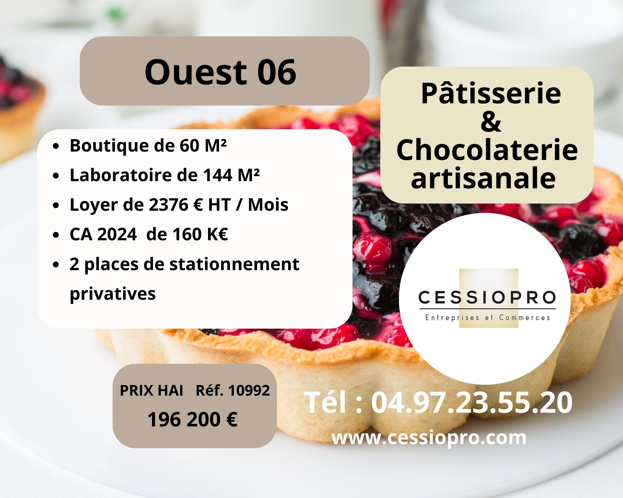 PÂTISSERIE & CHOCOLATERIE ARTISANALE ET LABORATOIRE 144m2 OUEST 06