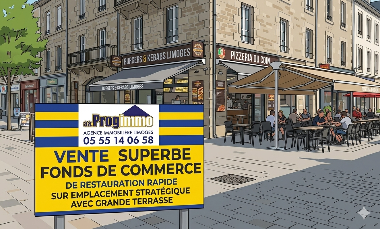 L'agence aa.PROGIMMO de LIMOGES, Sur axe très passant, vend un fonds de commerce de restauration rapide (Pizzeria, burgers, kebabs ....) - Local refait à neuf et bénéficiant d'une très belle terrasse privative. Affaire saine avec un très fort dévelop...