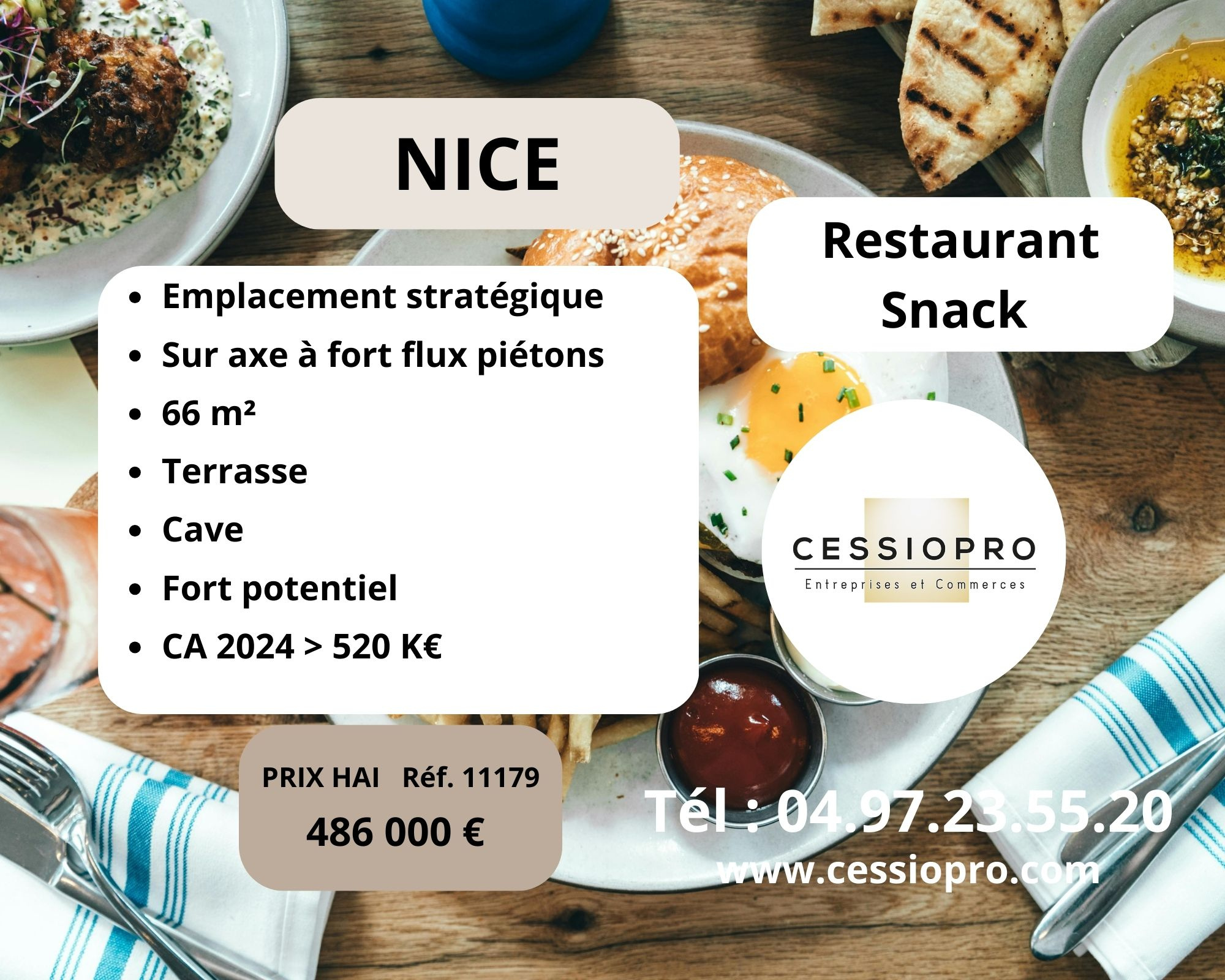 Élégant Restaurant/Brasserie 800KEUR de CA 2024 avec fort potentiel de développement 220 m2 en plein coeur de Nice