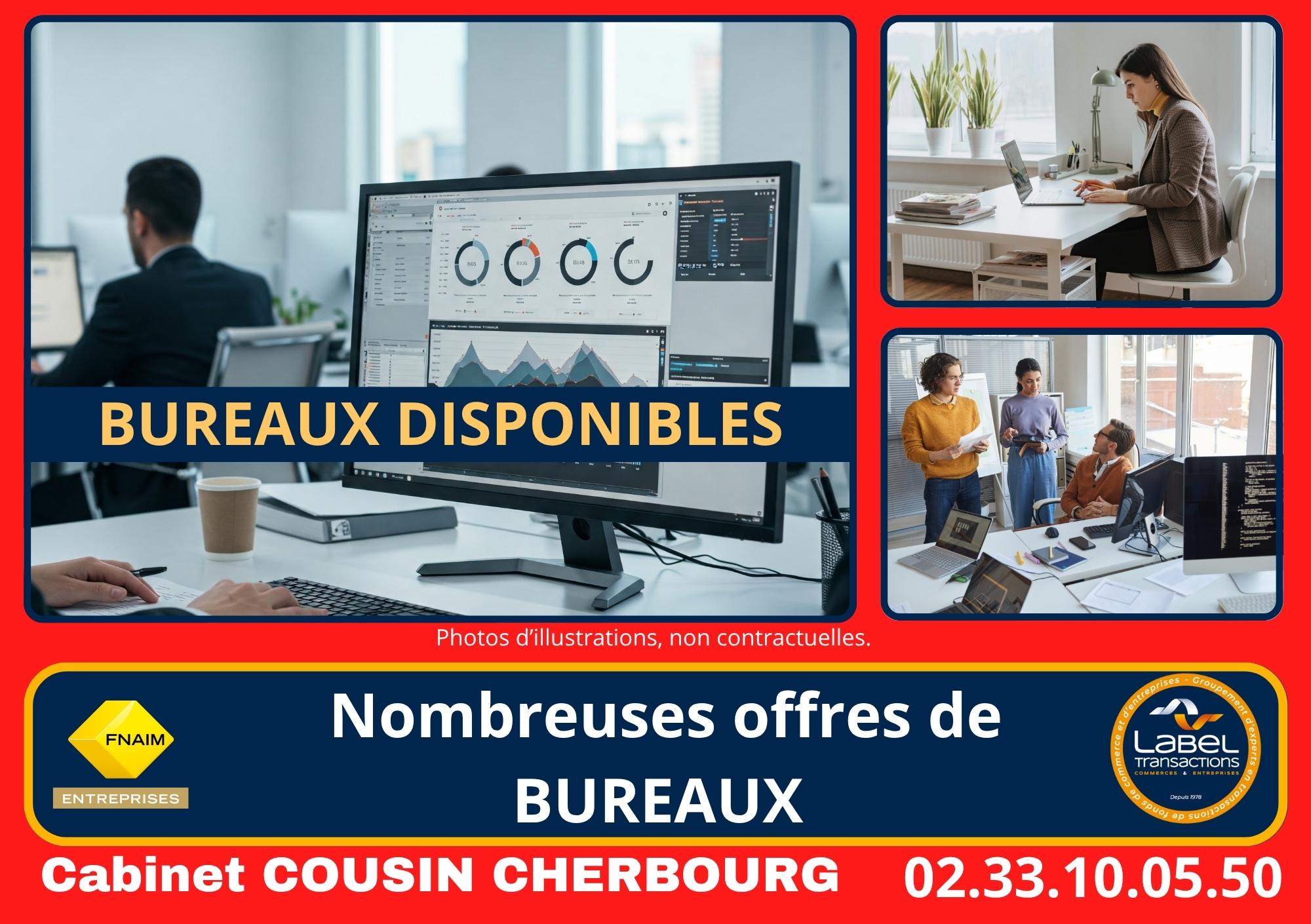 DEPT 50, A LOUER, nouveau BRICQUEBEC, rue de Bricqueville, BUREAUX A LOUER. Très belle visibilité. Possibilité 3 bureaux open space, sanitaires accès PMR. Libre début 2026. Loyer 950 euros + 100 euros (charges foncier et OM). Réf. 6837 CA : n/c EBE : n/c L...