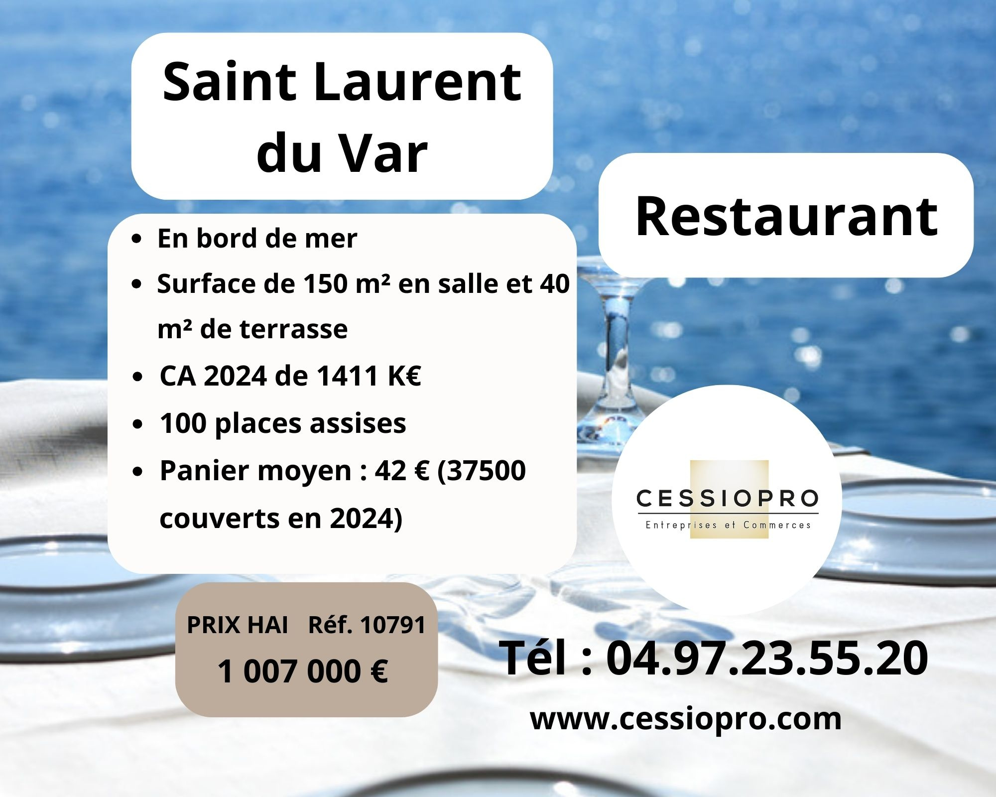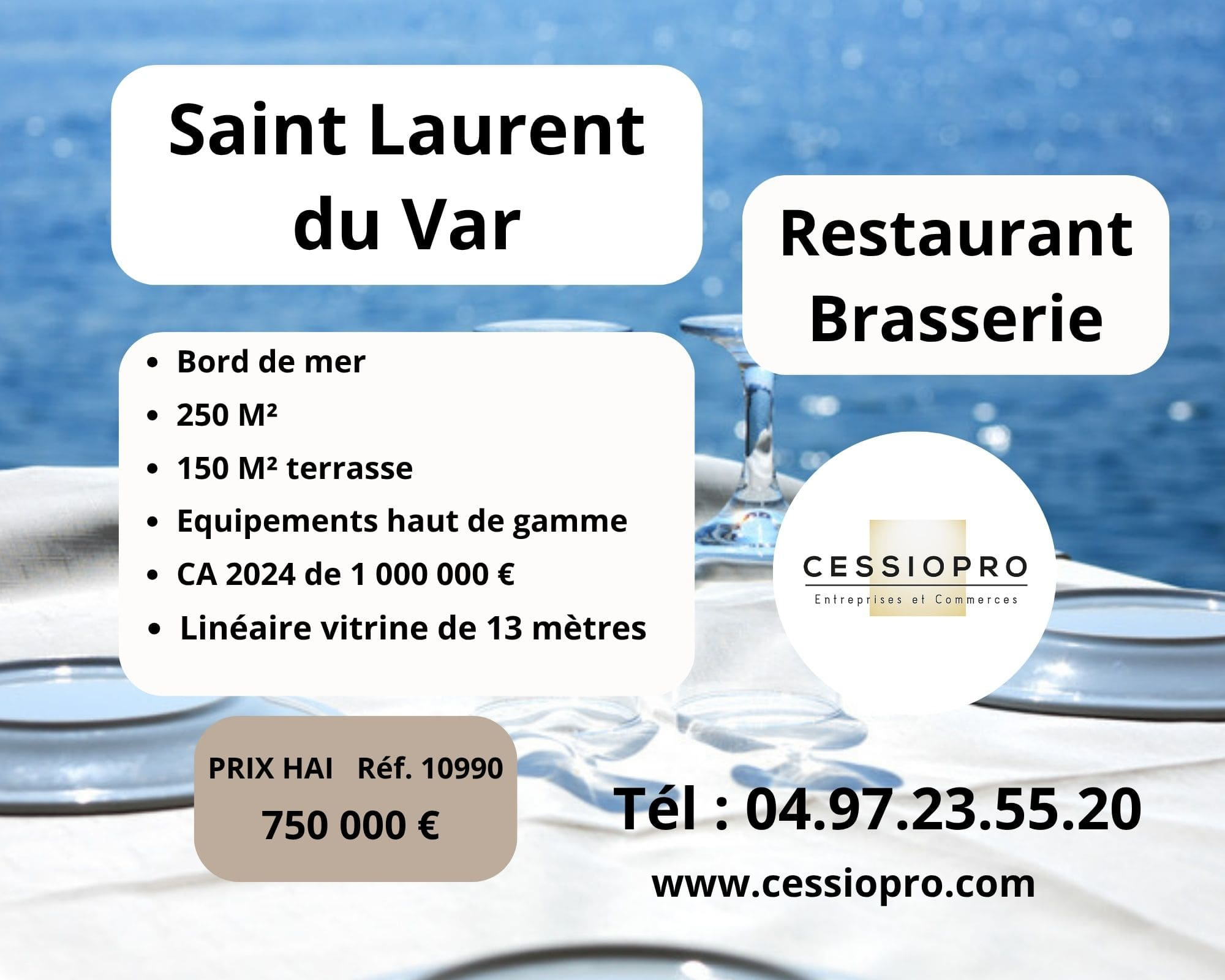 À Vendre : Restaurant Haut de Gamme Bord de mer Saint-Laurent-du-Var