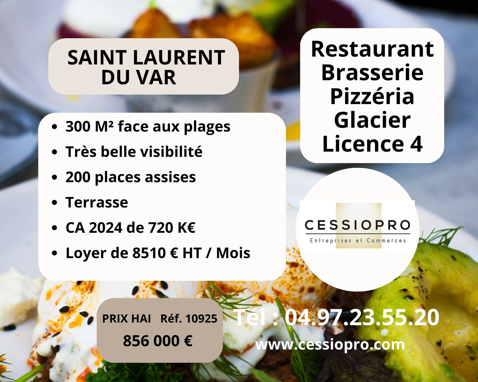 FONDS DE COMMERCE RESTAURANT BRASSERIE - SAINT LAURENT DU VAR BORD DE MER