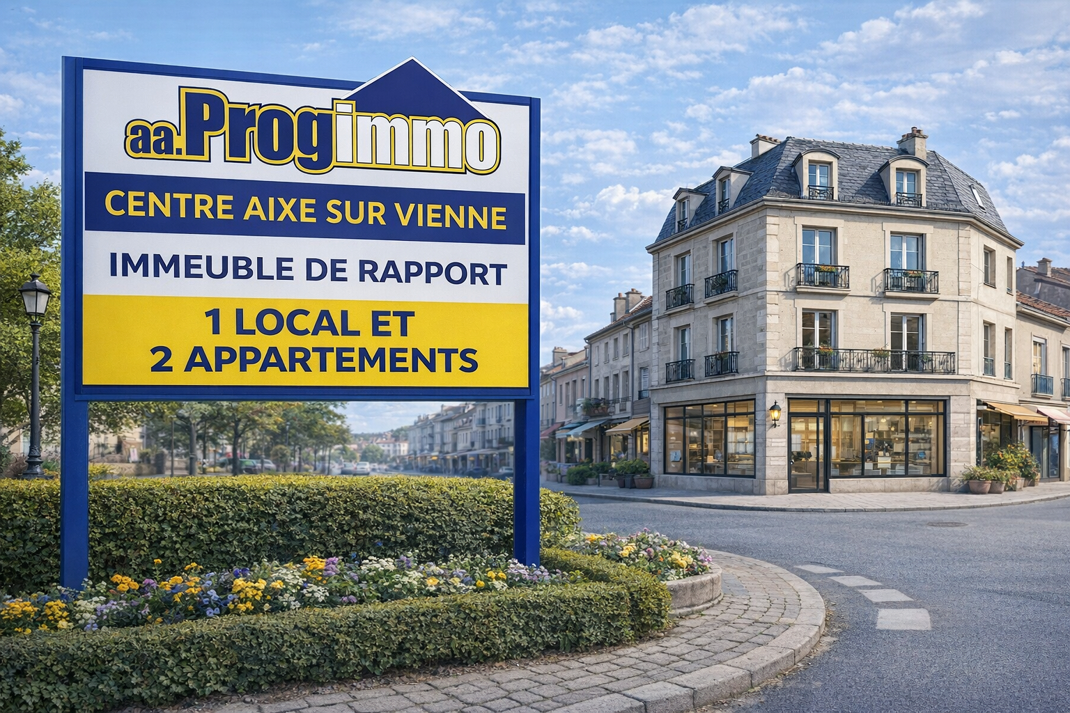 L'agence aa.PROGIMMO de LIMOGES, vend sur AIXE-SUR-VIENNE un bâtiment professionnel d'environ 225 m² de surface, implanté sur un emplacement commercial de 1er ligne avec une belle signature , Possible en plus location de deux appartements type T2 ...