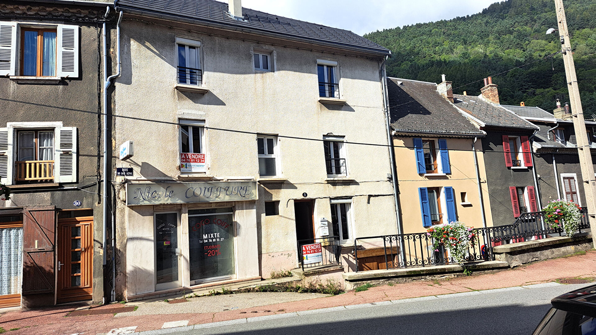 Investisseurs : La Mure proche centre dynamique et commercants de la ville, ensemble immobilier comprenant, un commerce ( salon de coiffure) possibilité de changement d'affectation , pour 80 m² environ avec une cuisine sur l'arrière.