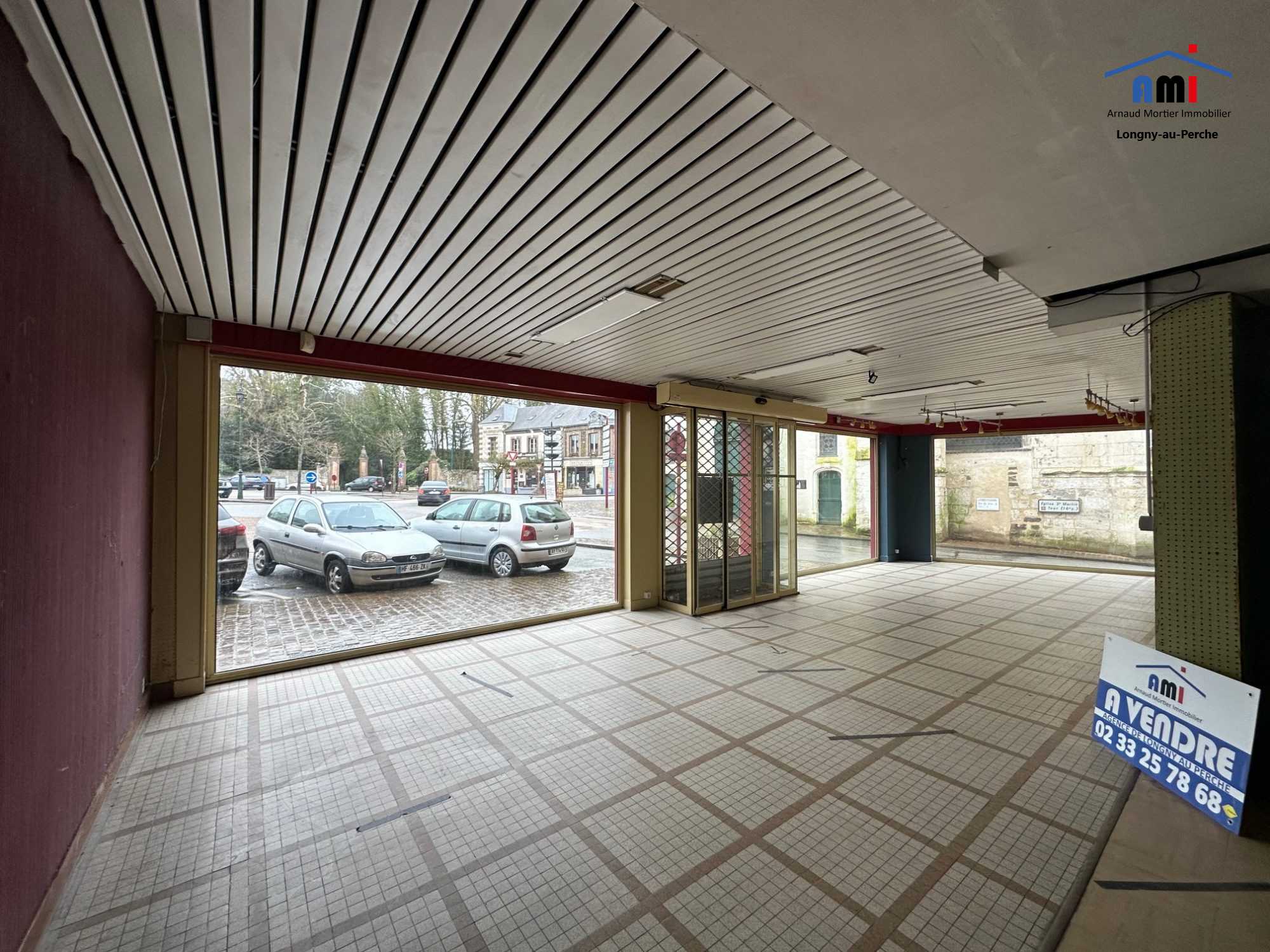 Sur la place du village de Longny-au-Perche, immeuble composé de 2 locaux commerciaux et de 6 appartements.