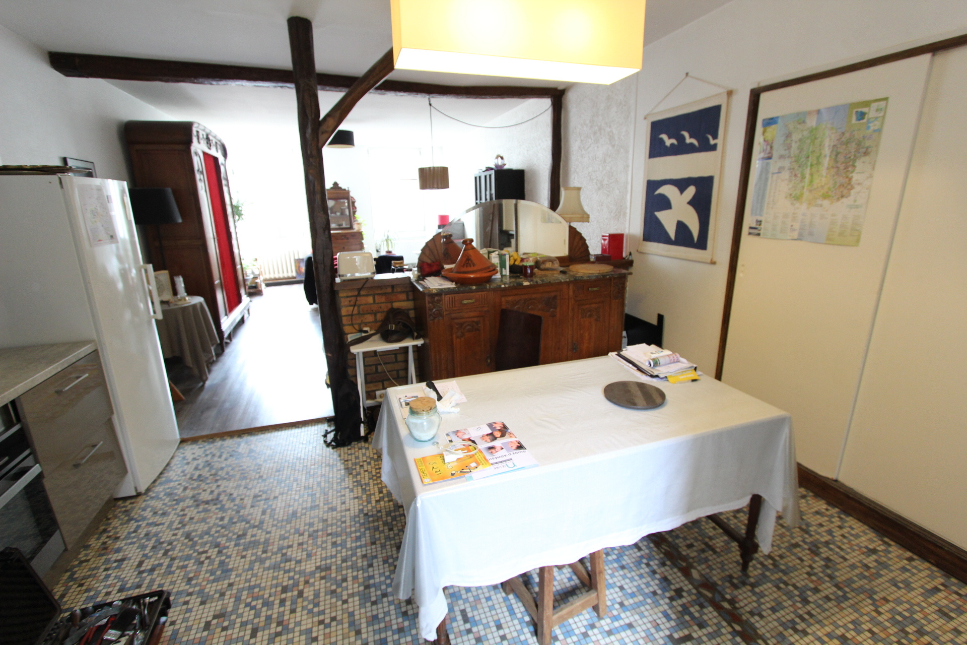 Centre-ville La Charité sur Loire, immeuble de rapport de deux logements (ref.10560) sur 169 m2 habitable : au rez-de-chaussée, un T3 LIBRE de 63 m2 composé d'un salon, d'un séjour avec coin-cuisine, une pièce-bureau sans fenêtre, une chambre, une sa...
