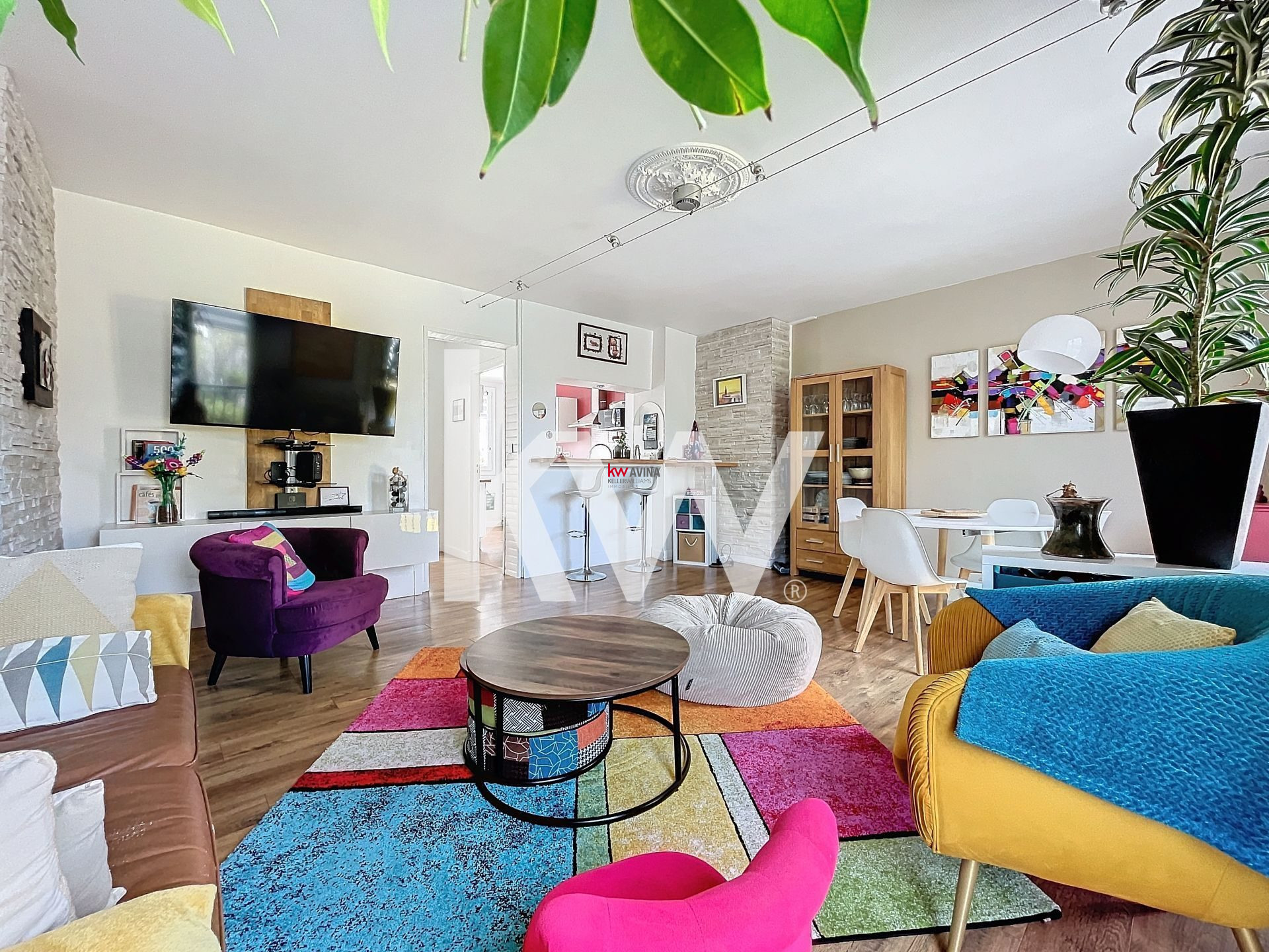 Actuellement loué en collocation : Un séjour avec cuisine ouverte donnant sur un ja...