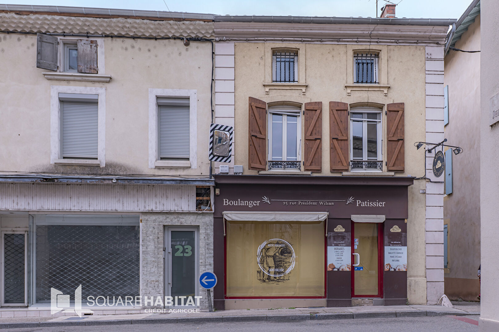 SAINT-VALLIER – En cœur de ville, petite monopropriété comprenant deux lots. Au rez-de-chaussée, un local commercial d’environ 50 m², actuellement loué 450 € HT/mois (départ du locataire prévu mi-2026). Au 1er étage, avec entrée indépendante, un appartement en...