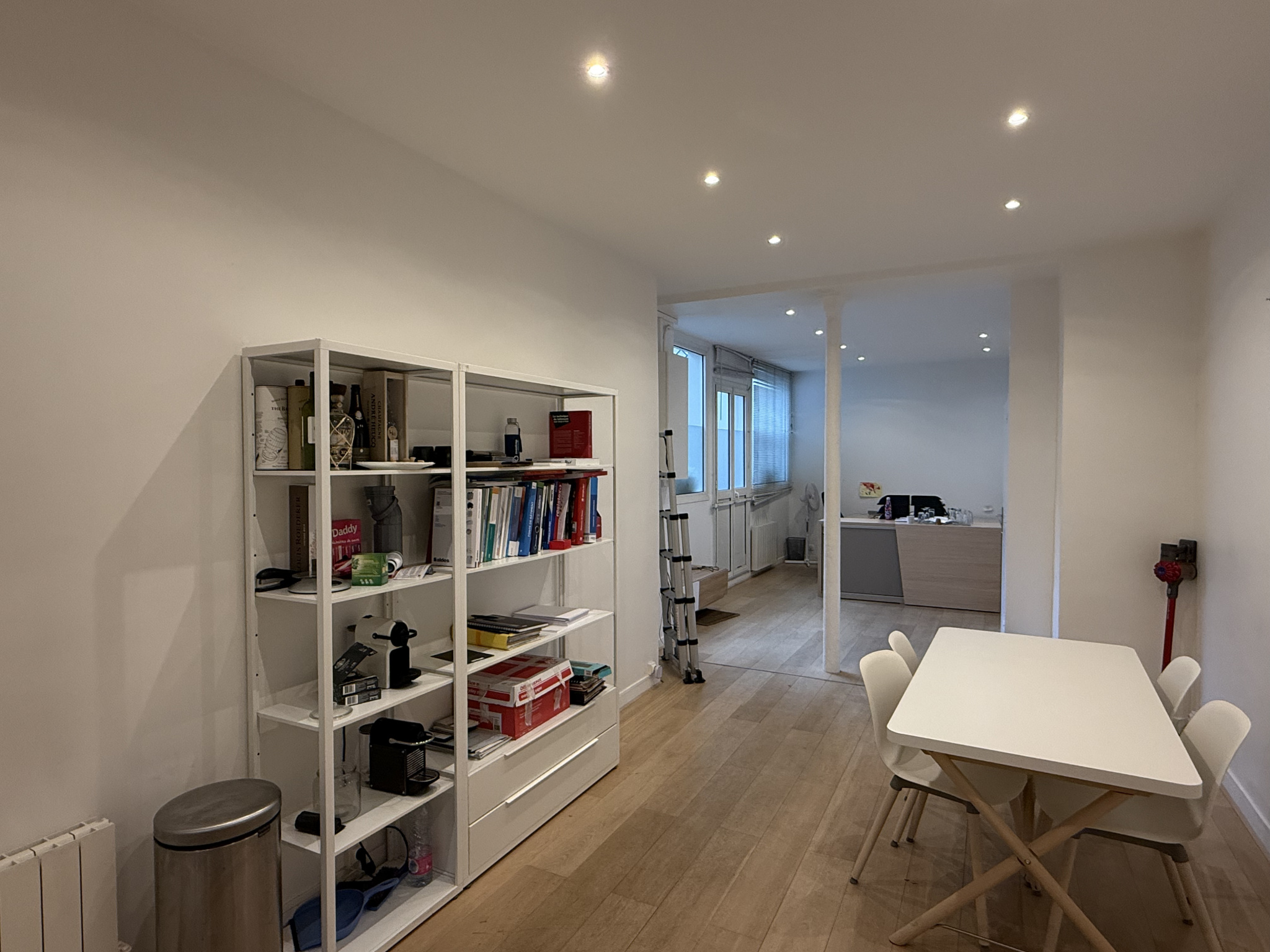 Grand local de 133 m2 en rez-de-chaussée ayant pignon sur rue et bénéficiant de beaux volumes, composé de 4/5 bureaux, d’un espace libre (cafeteria) et deux WC.Idéal pour profession libérale, cabinet comptable, laboratoire,etc.