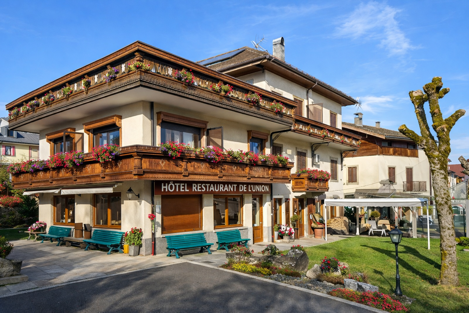 À vendre : Hôtel-restaurant indépendant emblématique à Lullin avec murs et fonds de commerce, situé à Lullin, au coeur de la moyenne montagne haut-savoyarde, dans un environnement calme et champêtre.