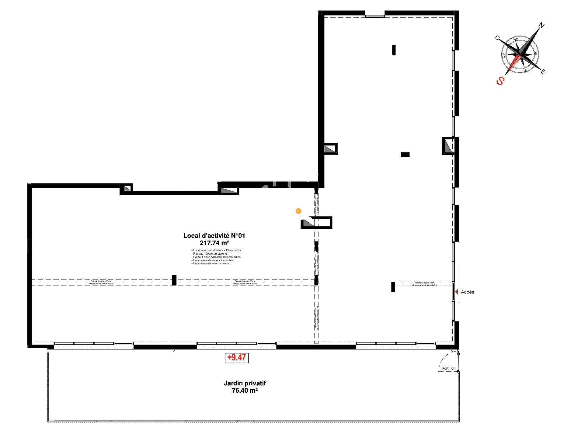 Le local sera livré brut de béton réseaux et fluides en attente.