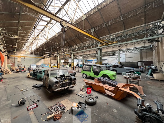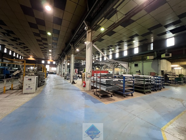 Vastes locaux de 5.120m2 de grande hauteur, dont 4.800m2 d'ateliers ouverts et d'un seul tenant. Charpente métallique, couverture bac acier, présence de 2 ponts roulants, quai de déchargement et niveleur, Dalles acoustiques, chauffage des ateliers pa...