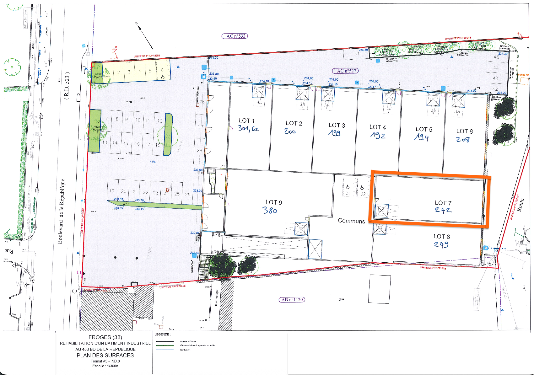 FROGES, local professionnel d'une surface totale de 242 m2 en copropriété