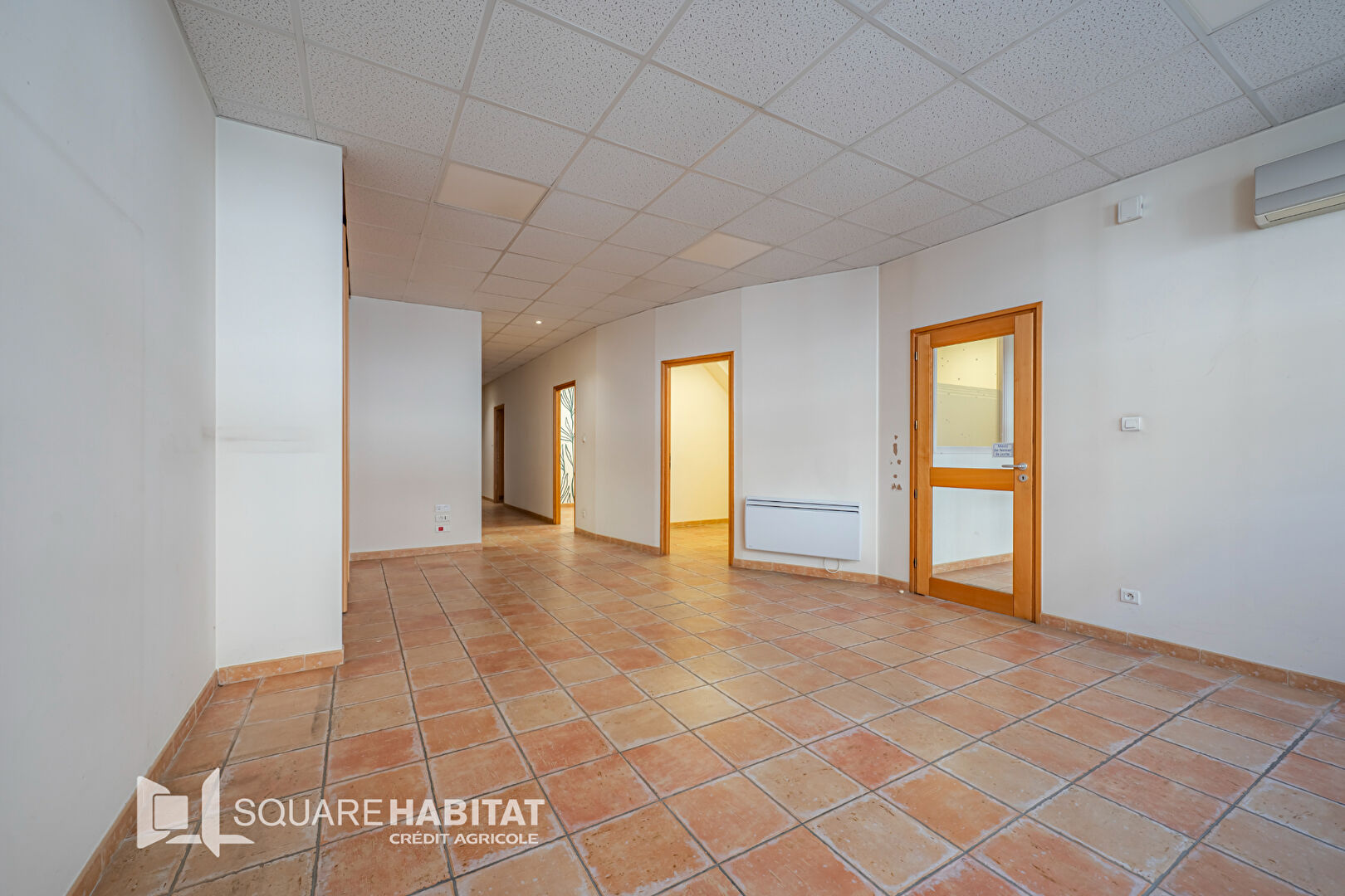 Local professionnel de 215m² en excellent état, plain-pied, comprenant un accueil, huit bureaux, une salle d'attente, un local archive, deux WC, cuisine et caves de 85m².