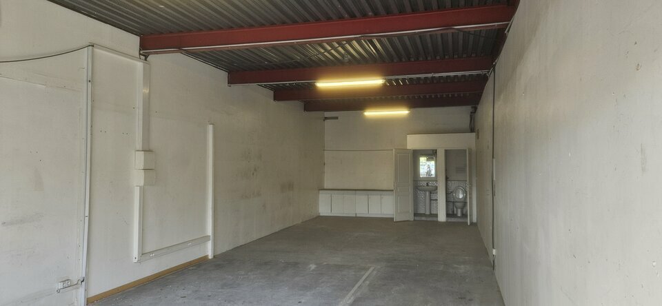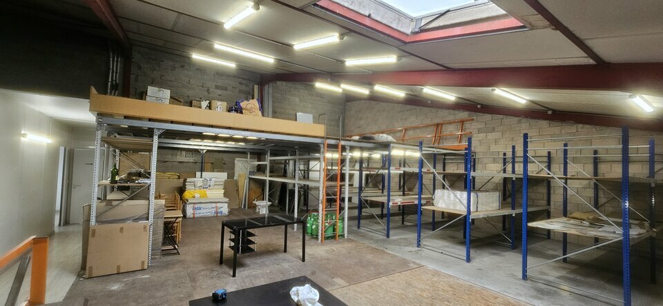 Lot 1 : 100 m2 + 50 m2 (mezzanine), une porte sectionnelle.