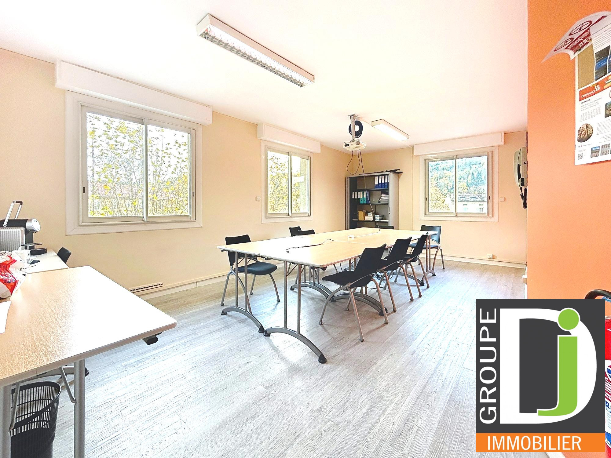Réf 4933 : ROMANS : A VENDRE BUREAUX CENTRE VILLE ( proche gare) d'une surface de 97 M² qui accueille 3 bureaux de 12 M², 27 M² et 38 m² . Cet espace de travail est très agréable car éclairé par de grandes fenêtres en alu. Il se situe dans une coproprié...