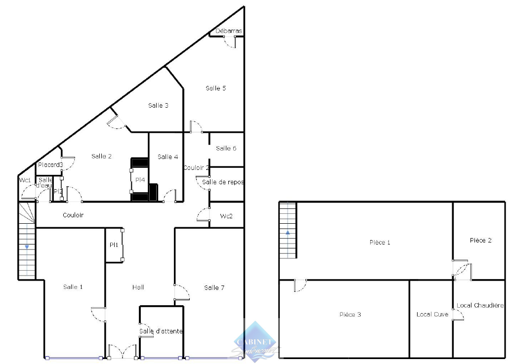 comprenant 1 espace d accueil, 1 salle d attente, 2 bureaux, une cuisine, un WC