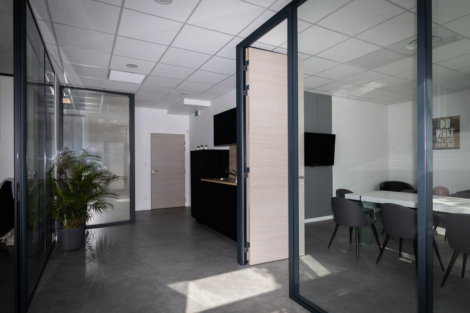 Ils sont composés de 6 bureaux, une salle de réunion et un espace cuisine ainsi qu'un accueil.