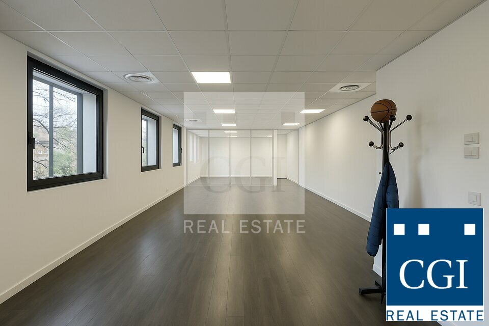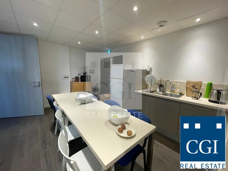 Bureaux neufs aménagés et cloisonnés avec climatisation réversible et belle cuisine.Deux lots : 81,3 m² (sous compromis) et 113,6 m² disponibles avec 2 emplacements de parking (1 en sous-sol et 1 en rdc) Ascenseur.