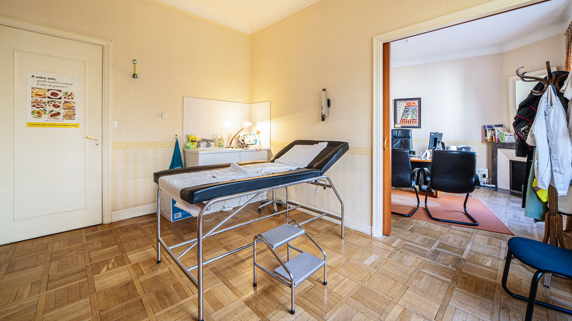 Ce local professionnel d'une surface d'environ 103m² est situé au 1er étage d'un immeuble en copropriété.