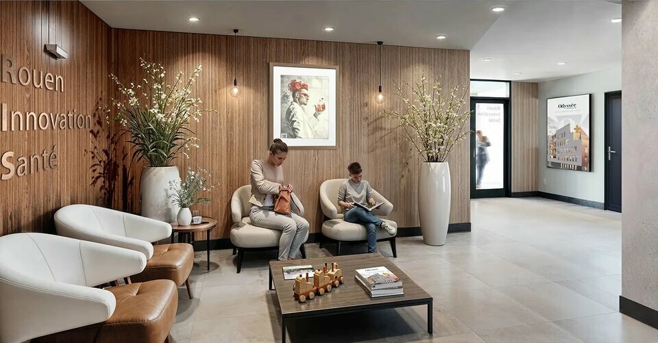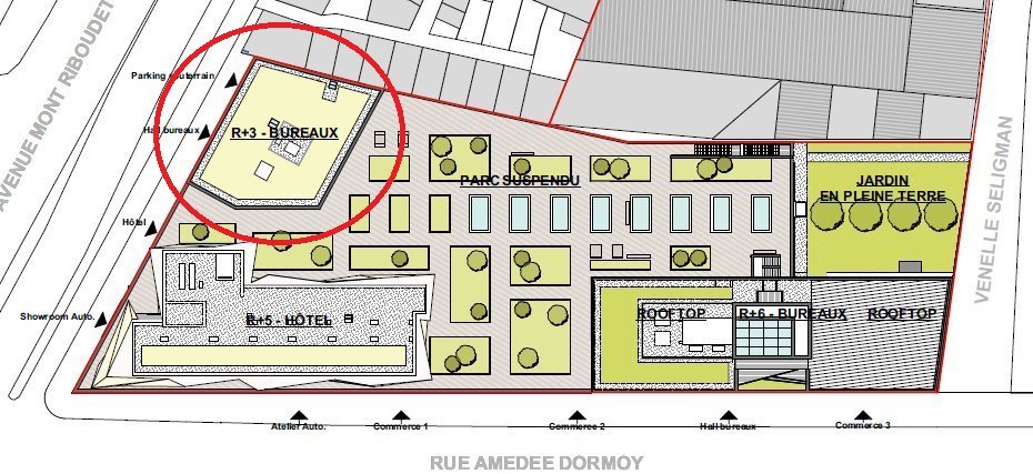 Au sein de la ZAC Rouen Innovation Santé, à proximité du CHU, un immeuble de bureaux en R+4, à construire, d'environ 2 339 m², comprenant 17 plateaux divisibles :