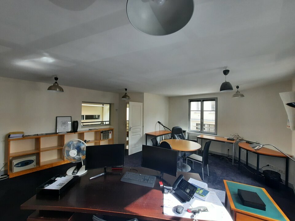 Au rez-de-chaussée d'un immeuble de bureaux en copropriété, un plateau d'environ 104 m², comprenant un open-space, un grand bureau, 2 bureaux individuels donnant sur rue, une petite réserve au fond du couloir central et un sanitaire accessible PMR.* ...