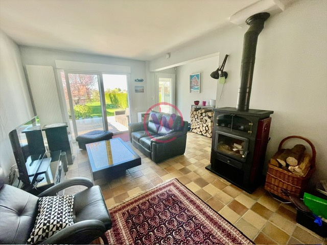 - Au rez-de-chaussée: Entrée, séjour de 35m2 avec poêle à bois, cuisine équipée indépendante NOLTE, salle de bains avec douche, WC