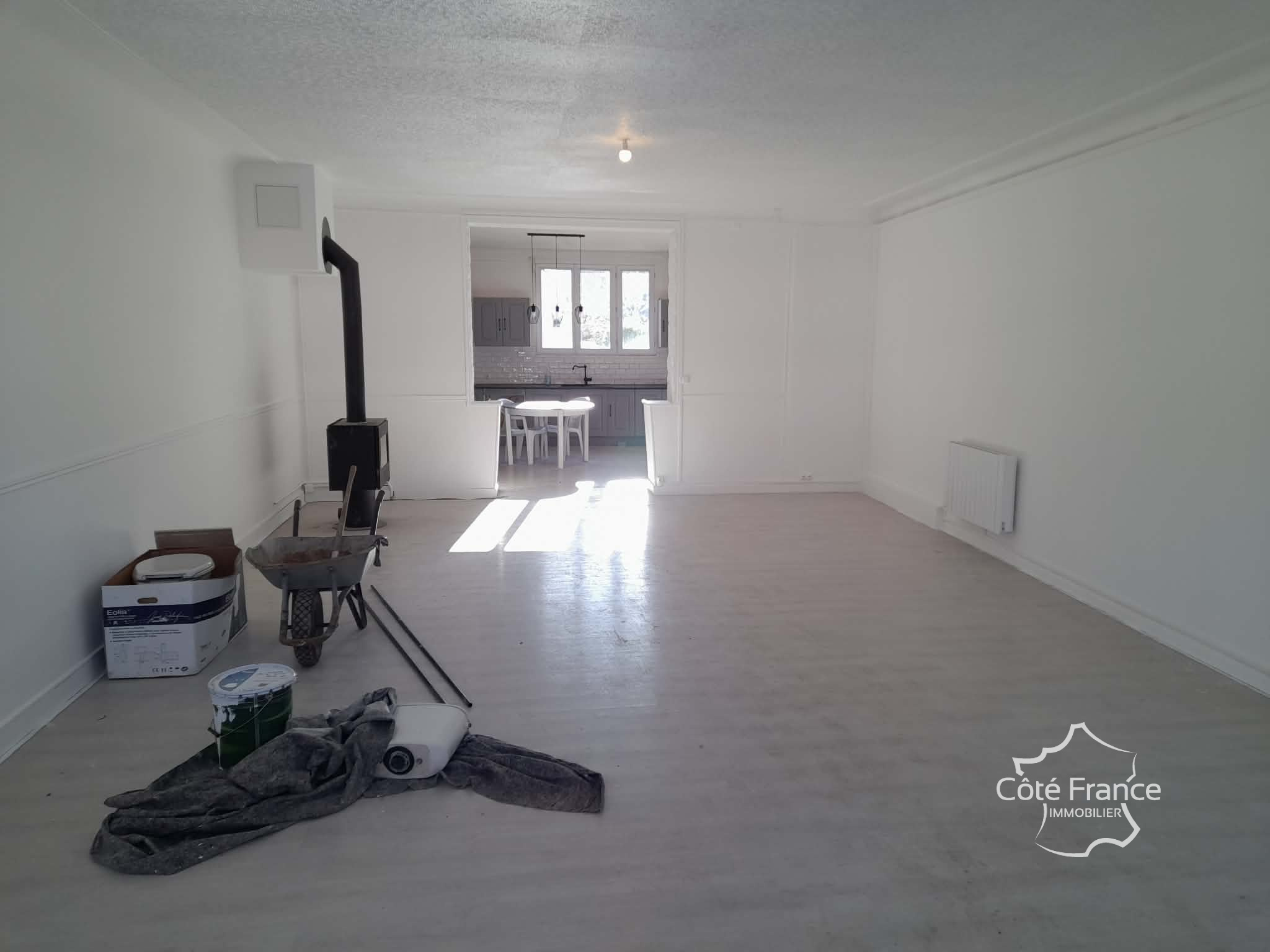 WATREMEZ IMMOBILIER vous propose EN EXCLUSIVITE cette charmante maison semi individuelle de 100m2 dans un petit village à 5 min de SAINS RICHAUMONT (02) comprenant au rez de chaussée : cuisine aménagée et équipée, pièce à vivre avec feu à pellets et salon (43m...