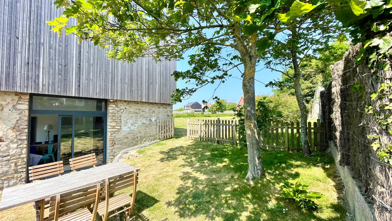 Située dans un cadre paisible, cette maison entièrement rénovée en 2018 offre aujourd'hui deux gîtes indépendants sur une belle parcelle de 800 m².