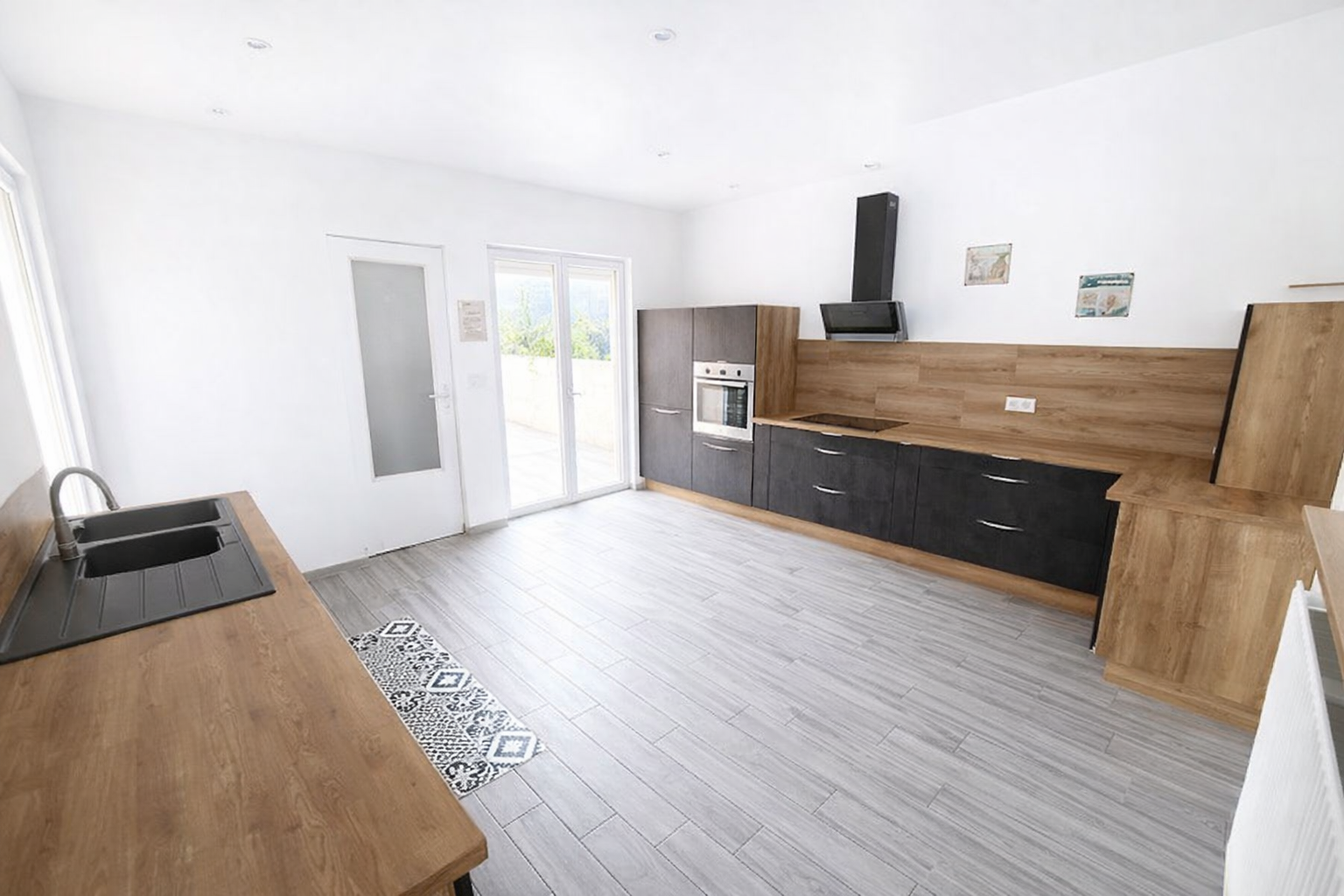 PROCHE CHU MAISON DE VILLE EN BON ETAT AVEC JARDIN Offrant entrée sur séjour avec carreaux de ciment, cuisine équipée, salle de jeux, wc.