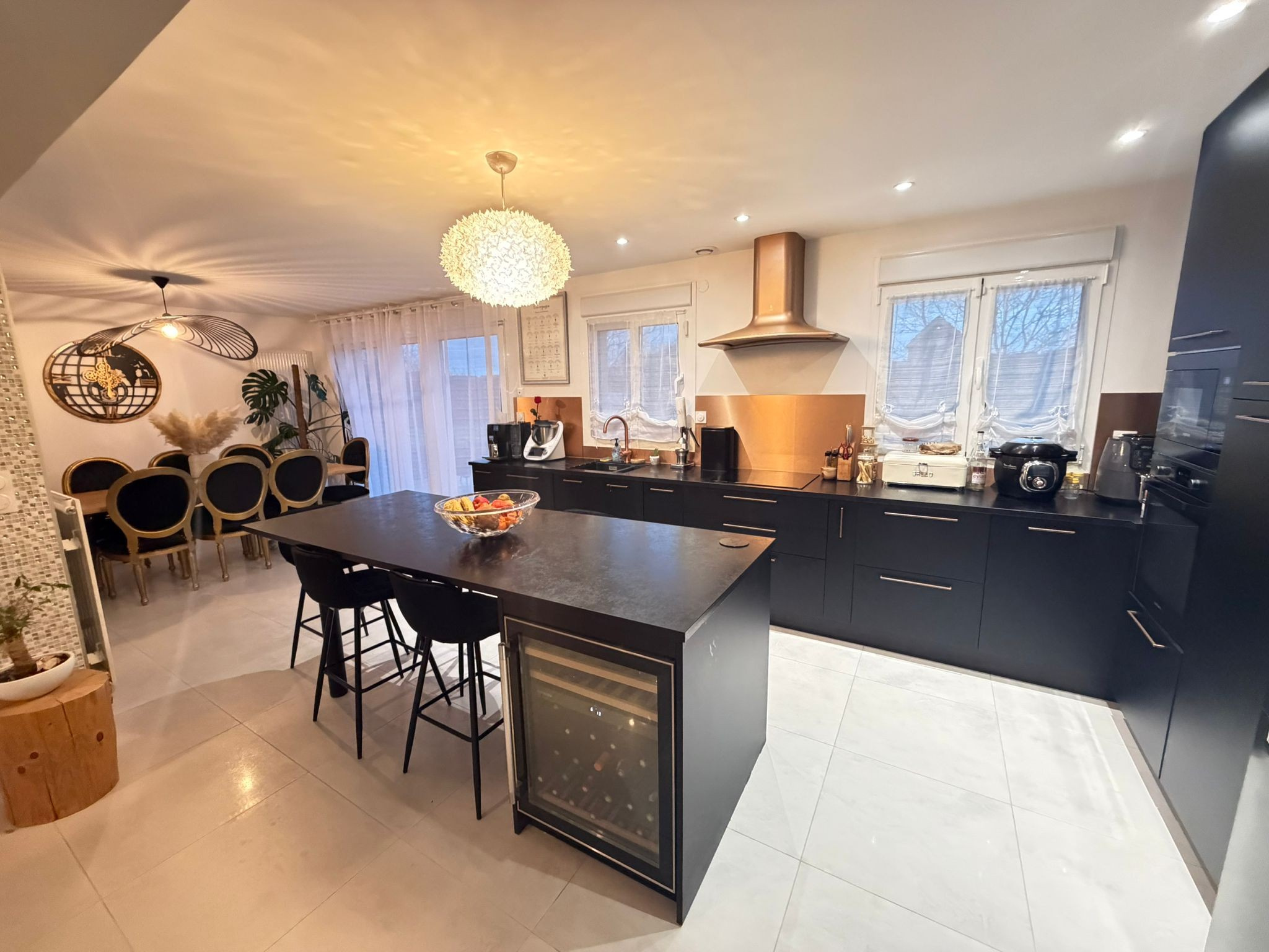 AMIENS SUD MAISON RENOVEE AVEC GOUT Offrant au rez de chaussée vaste séjour lumineux avec belle verrière, espace cuisine ouverte sur le séjour, cellier donnant accès au garage pour ranger les courses, salle d'eau et wc.
