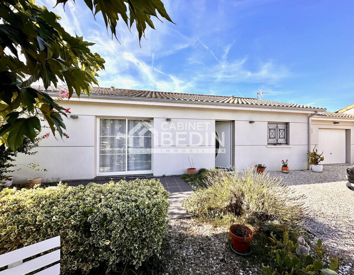 ANDERNOS COMTE. Maison de plain pied, construite en 2012, située dans un secteur calme et recherché, comprenant un beau séjour, une cuisine entièrement équipée, trois chambres, une salle d'eau, un cellier, un garage, le tout sur une parcelle d'enviro...