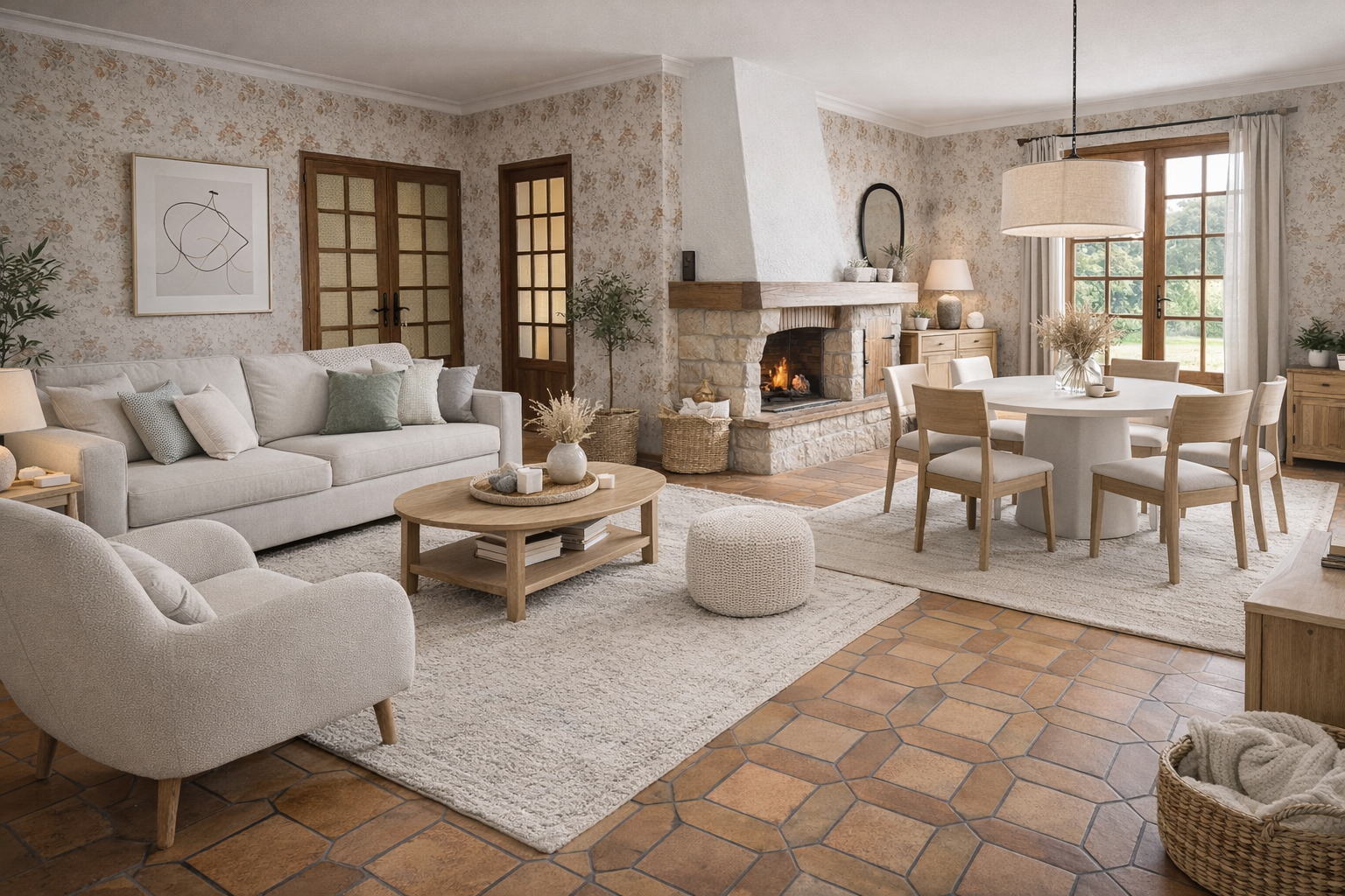 **Maison de plain-pied lumineuse et fonctionnelle, offrant un bel espace de vie comprenant un séjour, un salon convivial et une cuisine.**