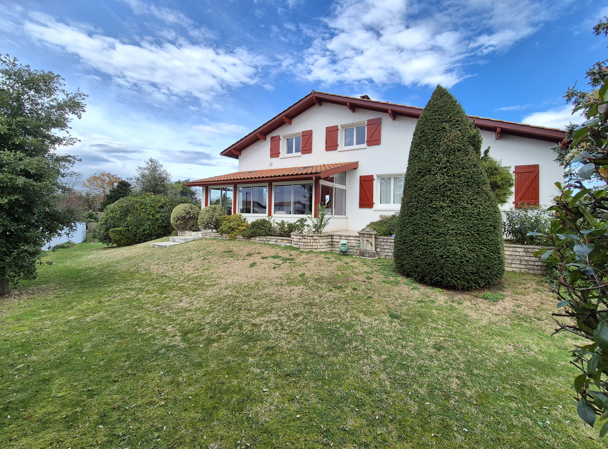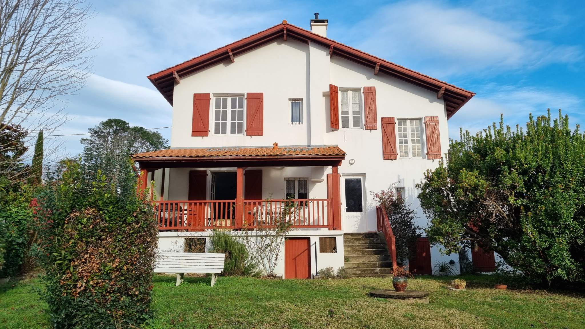 Au calme d'un domaine privé, en position dominante avec vue dégagée, Villa Basque de 1978 sur vide sanitaire, entièrement rénovée par un architecte d'Anglet en 2021.