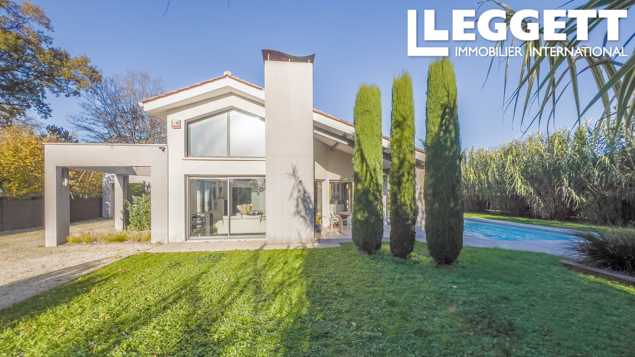 A28593SNT16 - On accède à cette belle propriété par un petit chemin privé, elle se situe au calme et en surplomb d'un magnifique parc arboré entièrement clos avec piscine.