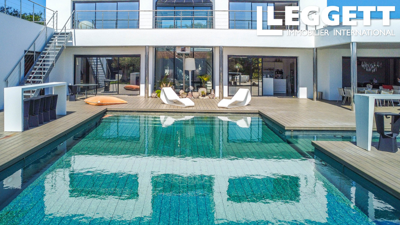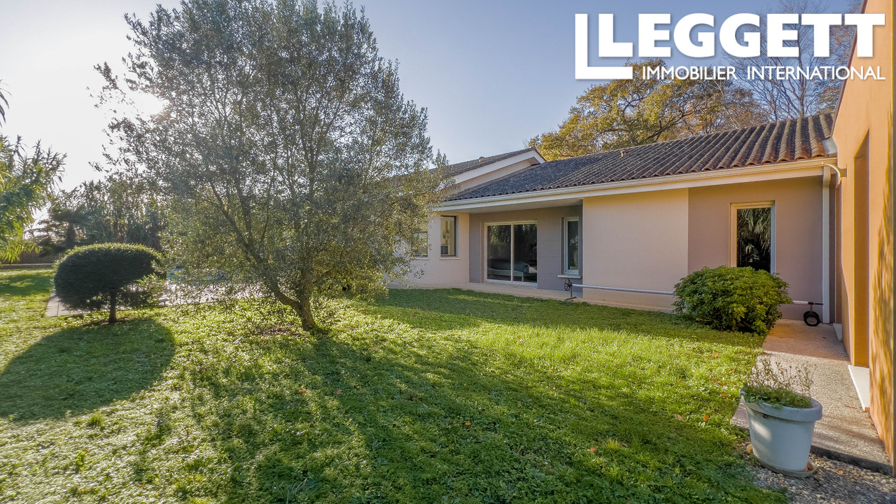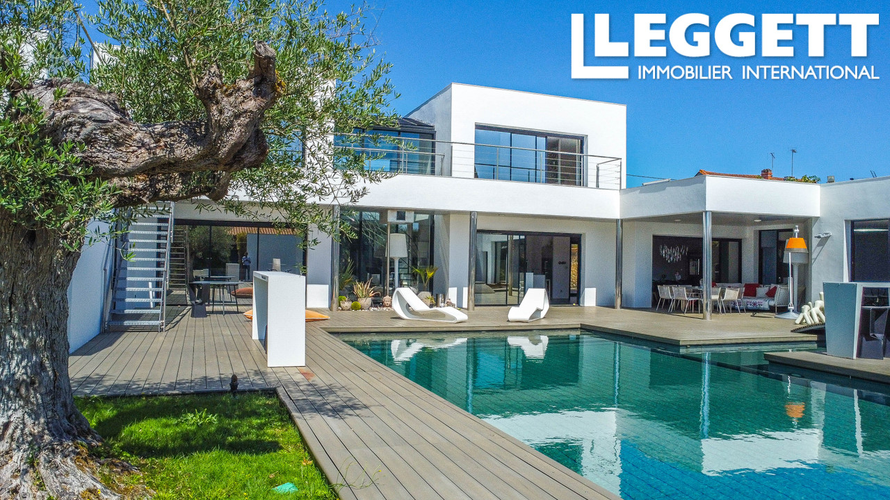 A38705DGE16 - Construction 2008 pour ce bien d'exception proposant 5 chambres en suite, bureau, piscine intérieure, extérieure et couloir de nage sous terrasses en bois immergeables, le tout sur terrain clos et arboré avec grand car port et cuisine d'...