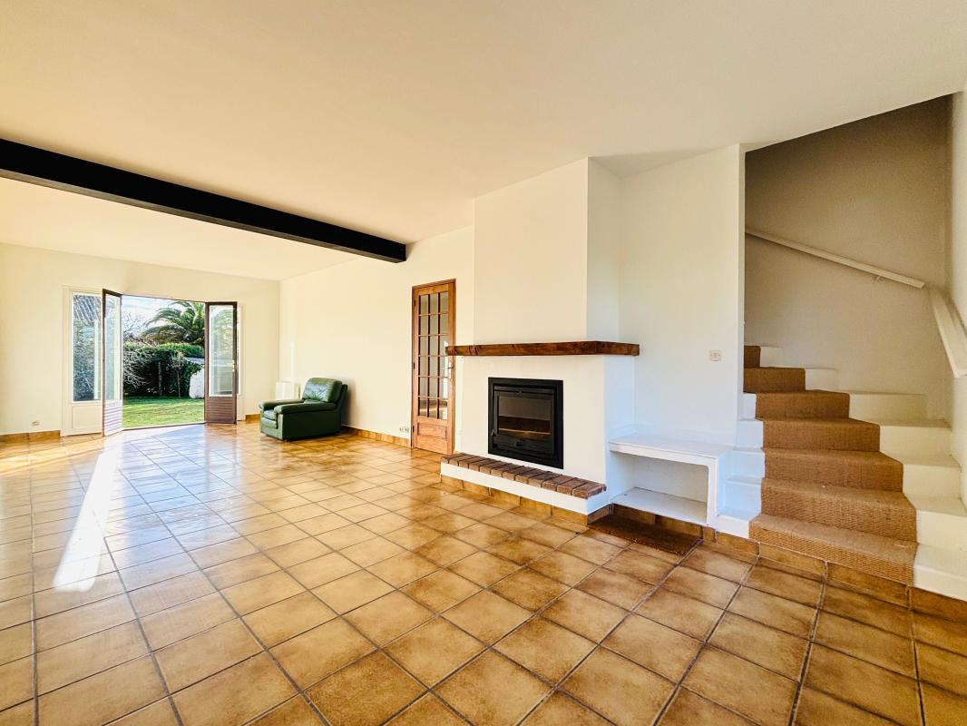 À VENDRE : MAISON T4 À ANGRESSE - Descriptif : Rez-de-chaussée : ° Une cuisine équipée, ouverte sur un double séjour lumineux, avec accès direct à une terrasse. ° Un cellier. ° Un WC indépendant. À l?étage : ° Un palier desservant 3 cham...