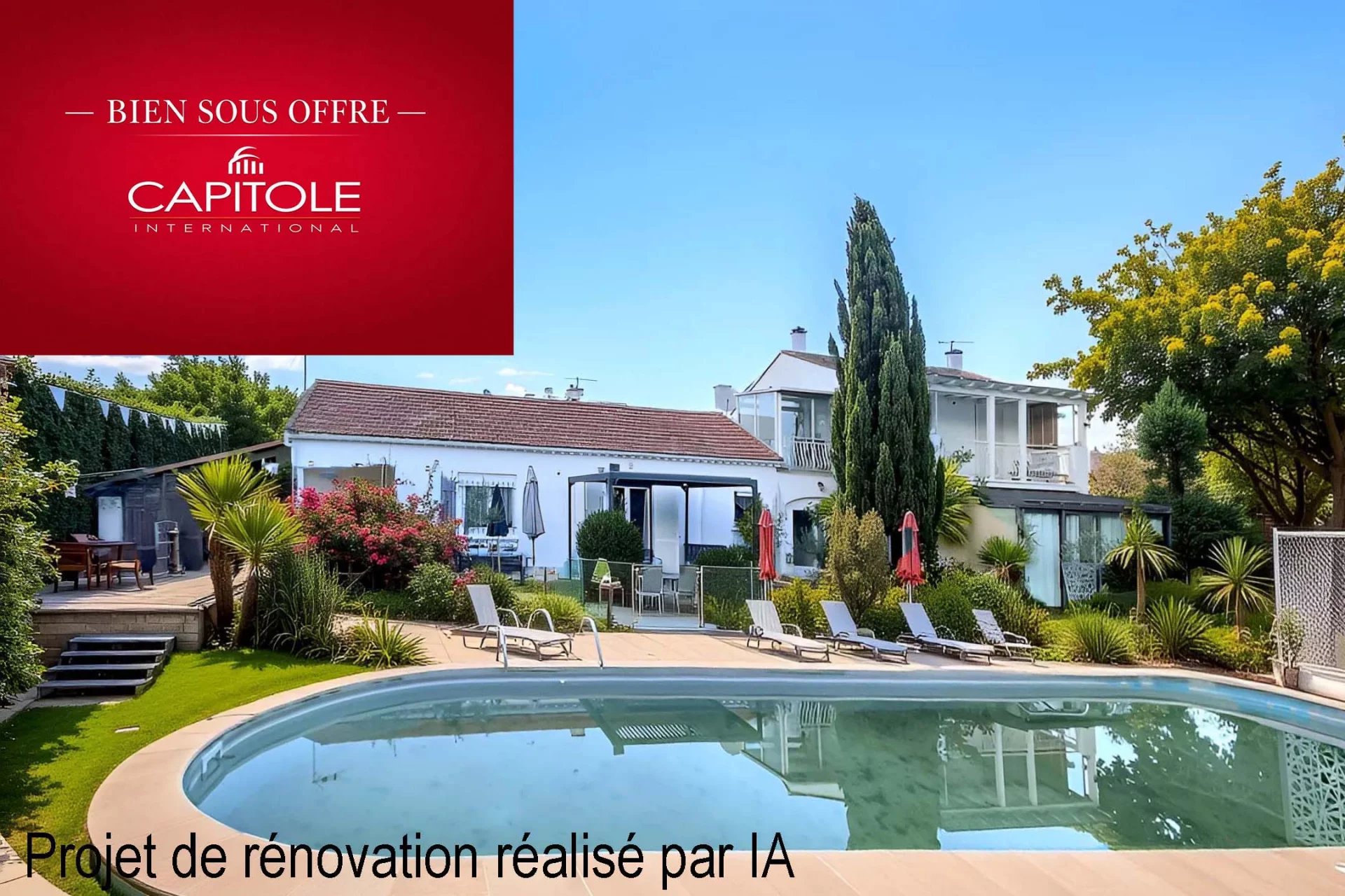 Dans un écrin de verdure magnifique villa 6 pièces sur terrain d'environ 2000 m² composée d'un lumineux séjour double avec cuisine us équipée donnant sur une magnifique terrasse sud ouest et sa piscine avec pool house,