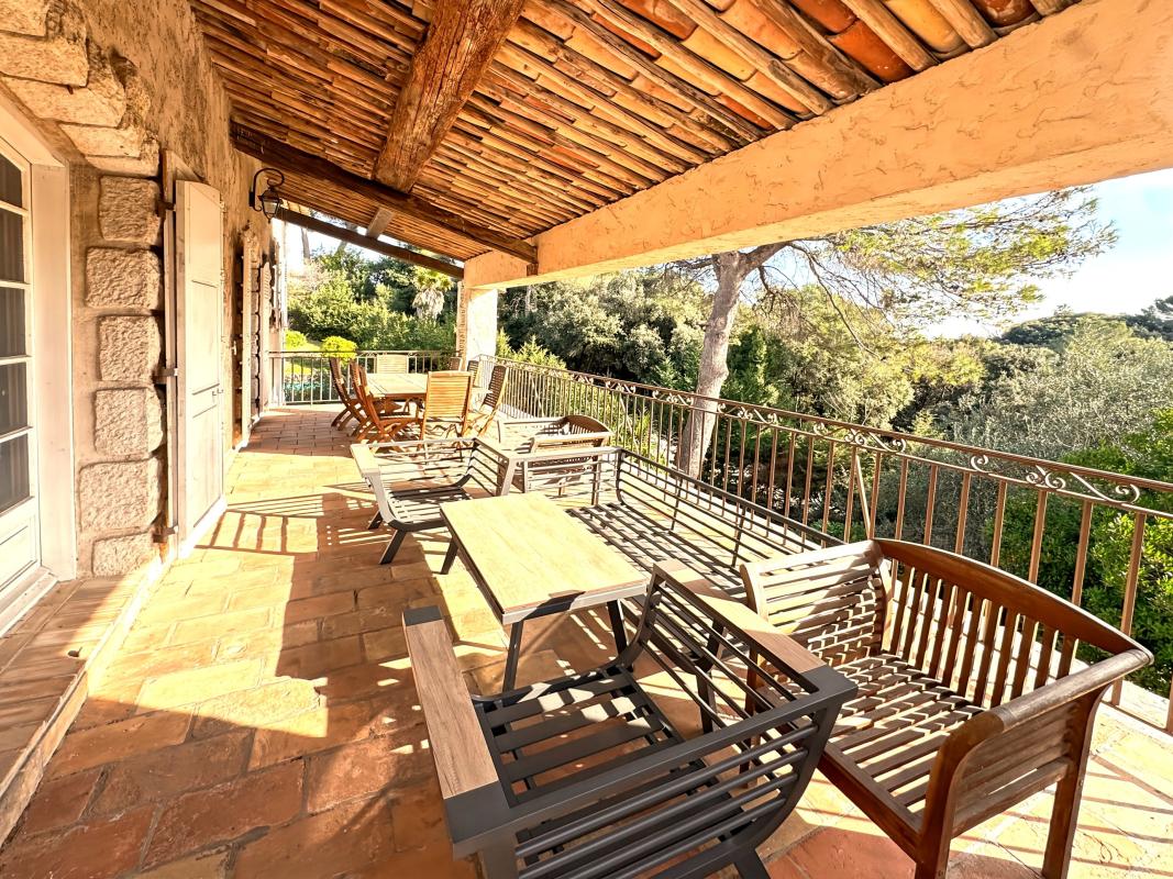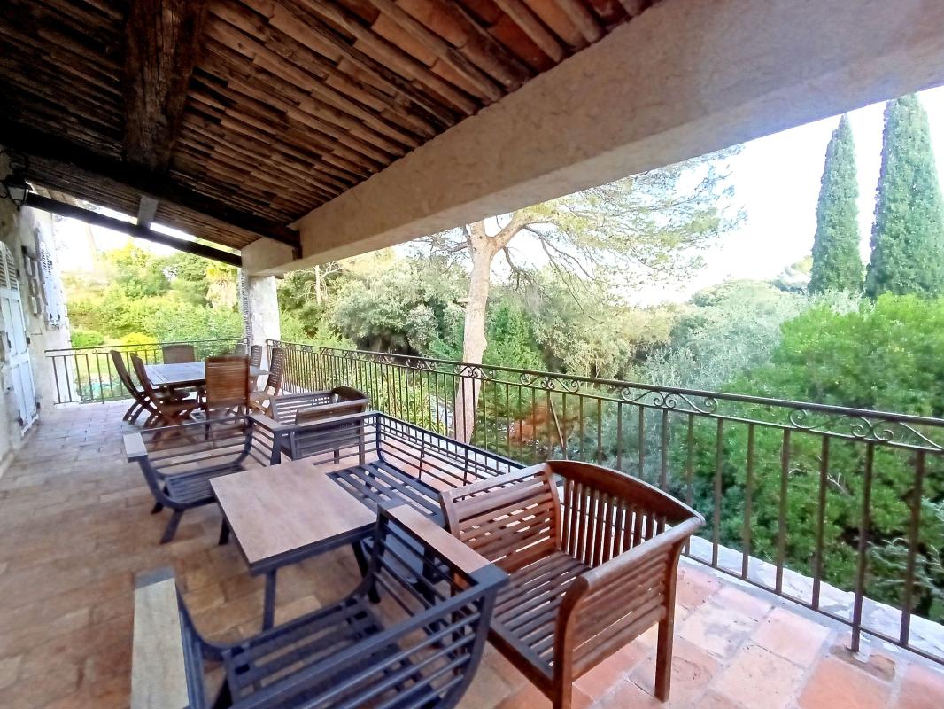 Sur un terrain de 2300 m2 avec piscine dans domaine fermé sur ANTIBES, Villa provençale de caractère composée d'un, séjour cathédrale avec mezzanine, 3/4 chambres, atelier et sa cuisine indépendante, salle de bain, salle d'eau , 3 toilettes, cuisine ...