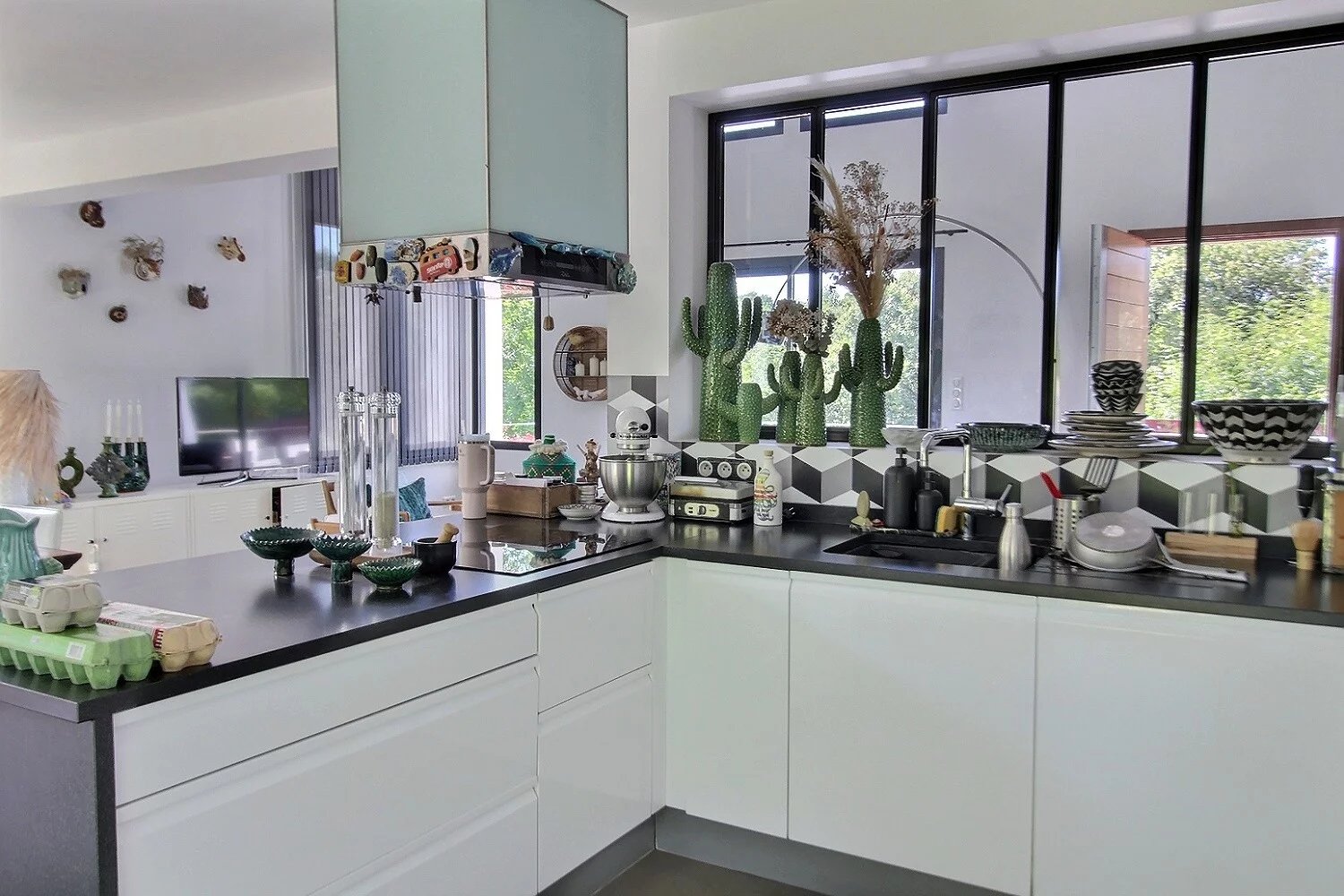 Idéalement située dans un environnement paisible, cette maison moderne vous séduira par sa luminosité et son cadre verdoyant .