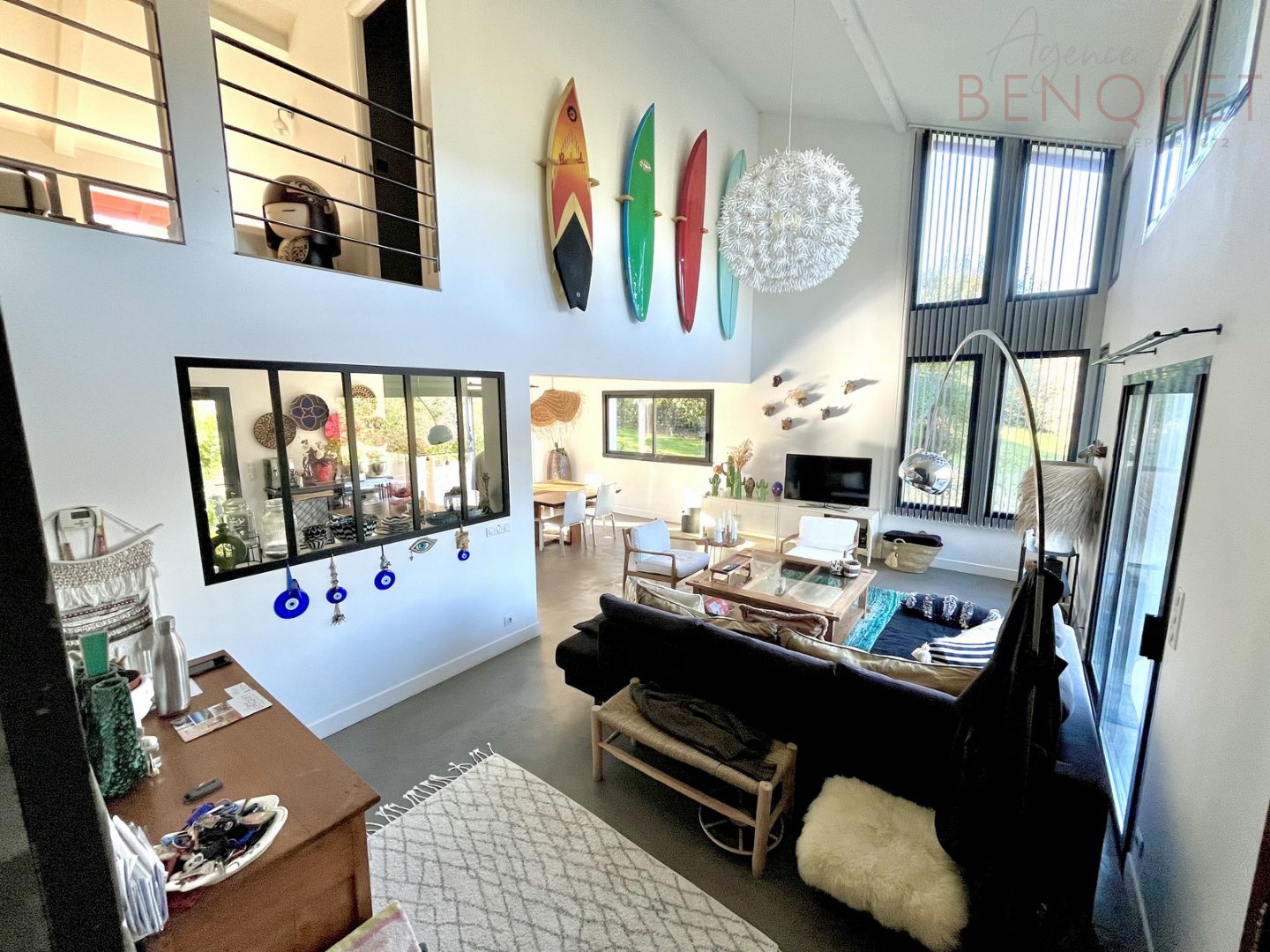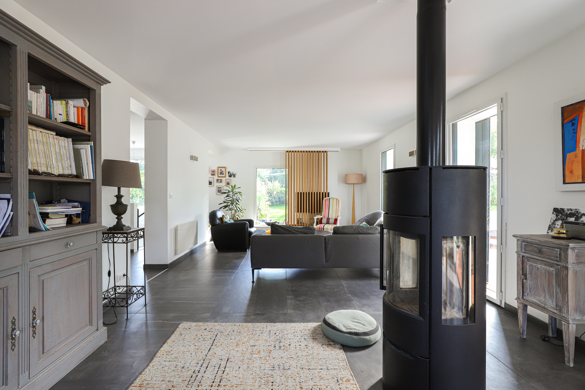 Cuisine ouverte sur salle à manger et salon