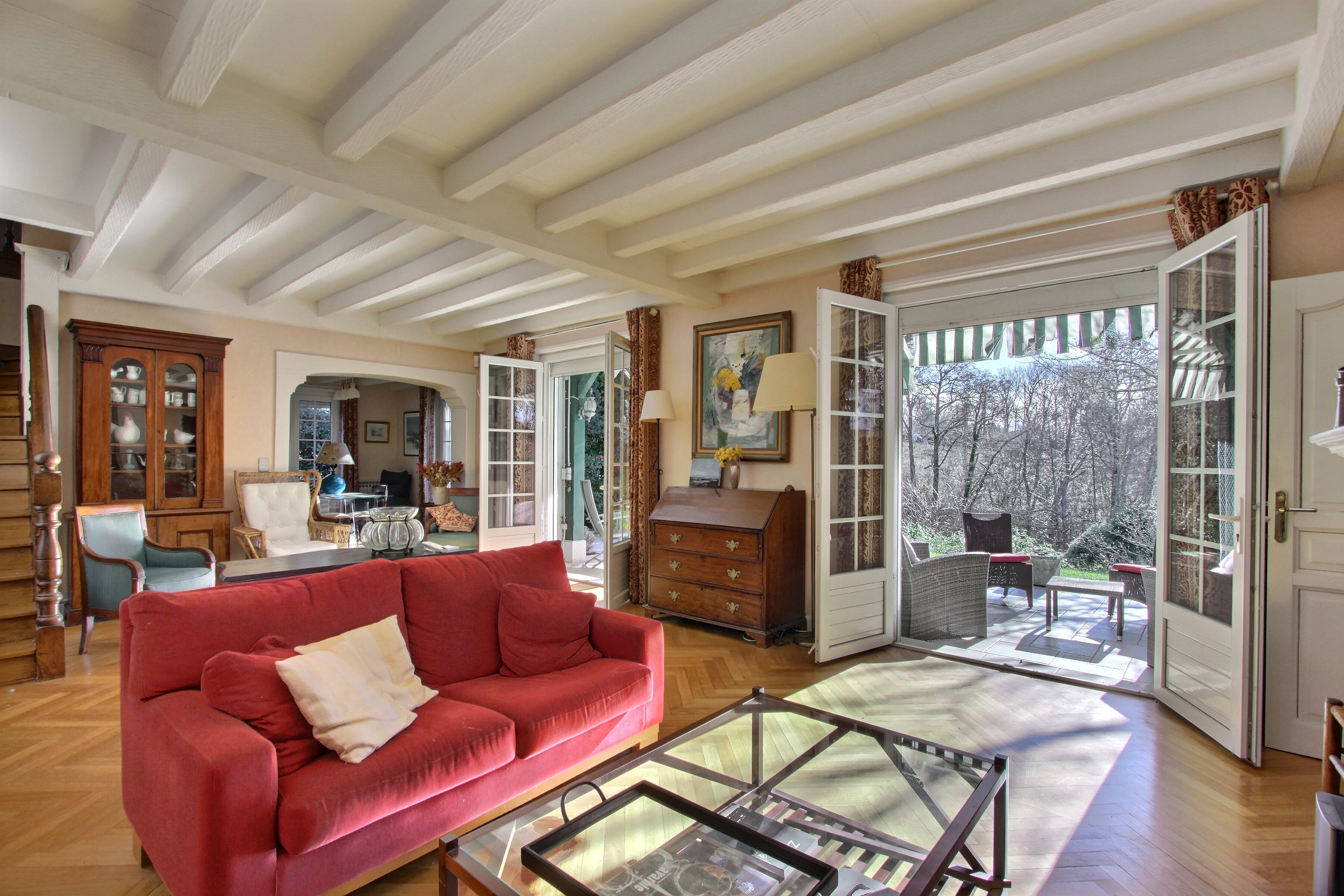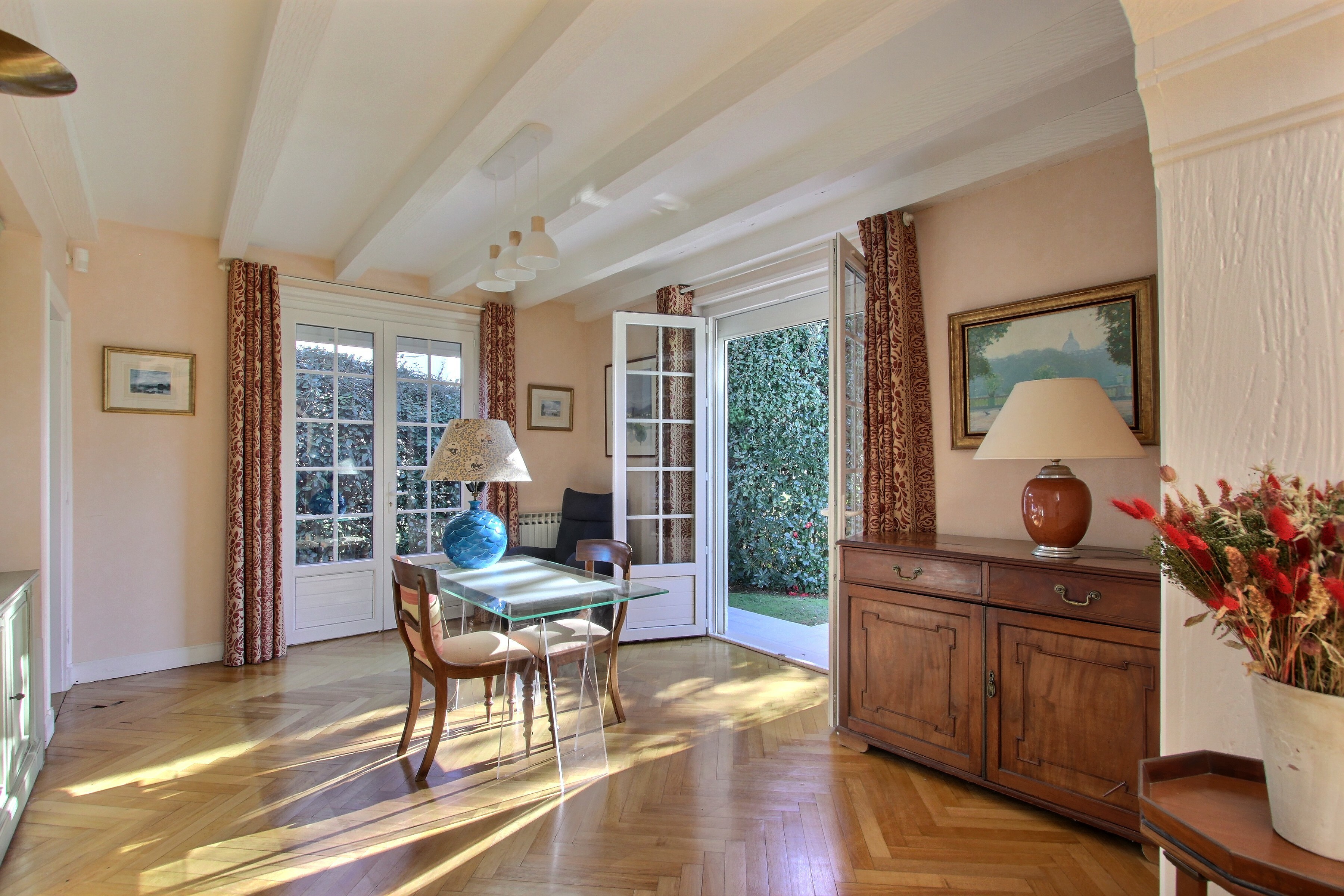 A proximité immédiate du centre du village, au fond d'une impasse, dans un cadre arboré et calme, découvrez cette maison de 215 m² sur un beau terrain exposé sud avec piscine.