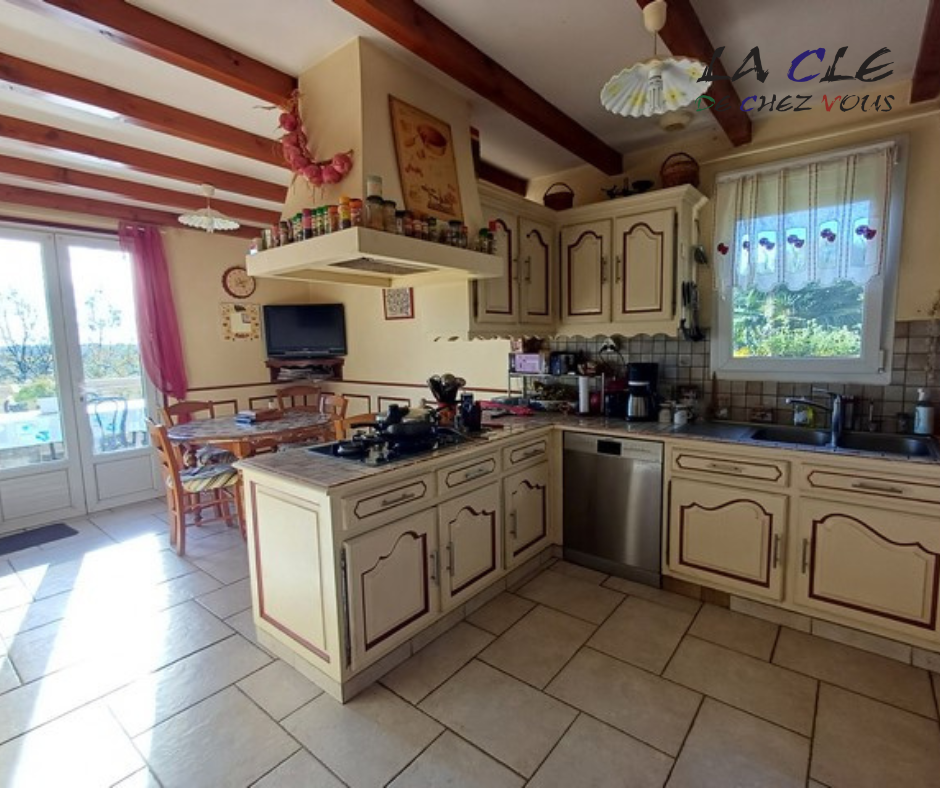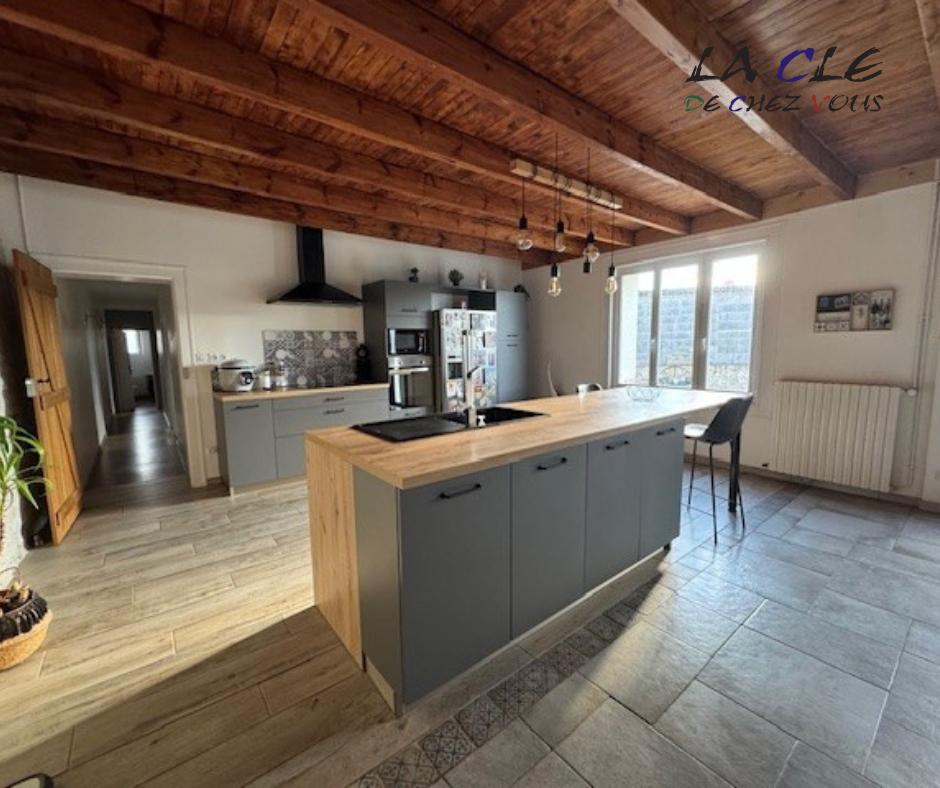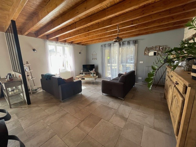 Cette maison rénovée d'environ 180 m2 se compose d'une salle à manger avec cuisine équipée et cheminée, une arrière cuisine, un séjour avec four à pain, 3 chambres, un bureau, une salle d'eau avec toilettes, une salle de bains et des toilettes.<...