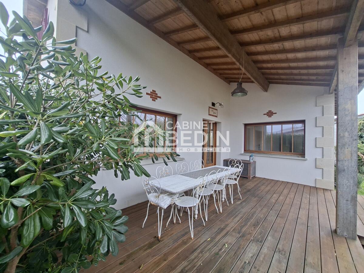 ARES : Jolie landaise proposant une belle pièce de vie agrémentée de grandes terrasses pour pleinement profiter du jardin, cuisine aménagée, 2 chambres et un bureau pour le rez-de-chaussée avec salle de bains et WC et à l'étage un espace parent avec sa me...