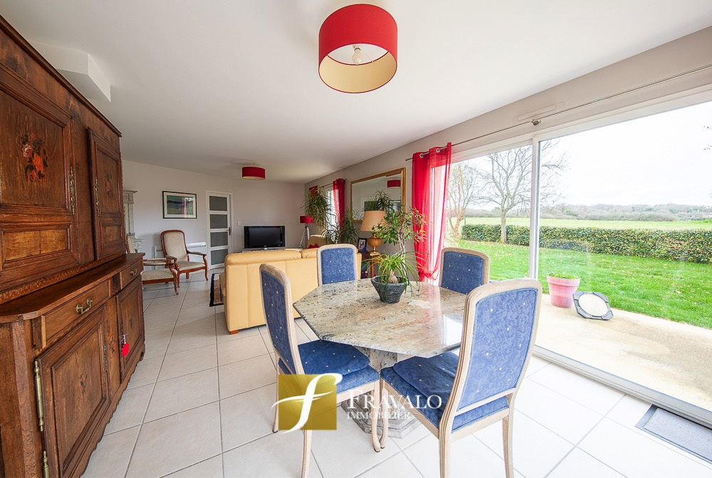 Le Moustoir, au calme d'une impasse, lumineuse maison de 110 m2 sur un terrain de 530 m2. Le rez-de-chaussée se compose d'une entrée avec placard, d'une séjour avec cheminée de plus de 35 m2, d'une cuisine indépendante équipée, d'un ce...