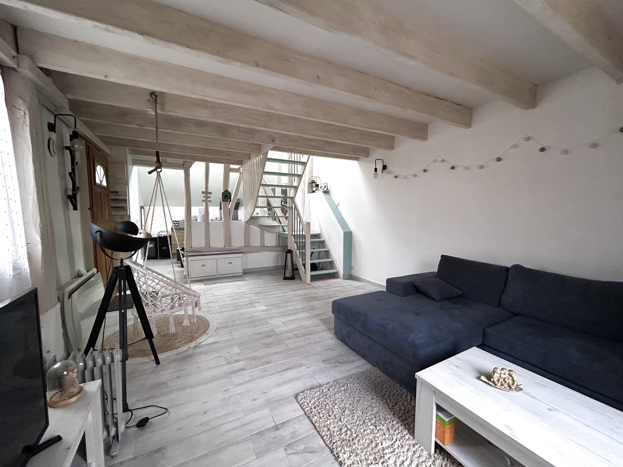 A découvrir, jolie maison avec un séjour de 30 m2 et 2 chambres à l'étage, cave sous l'ensemble (46m2 loi Carrez, beaucoup plus au sol car étage mansardé).