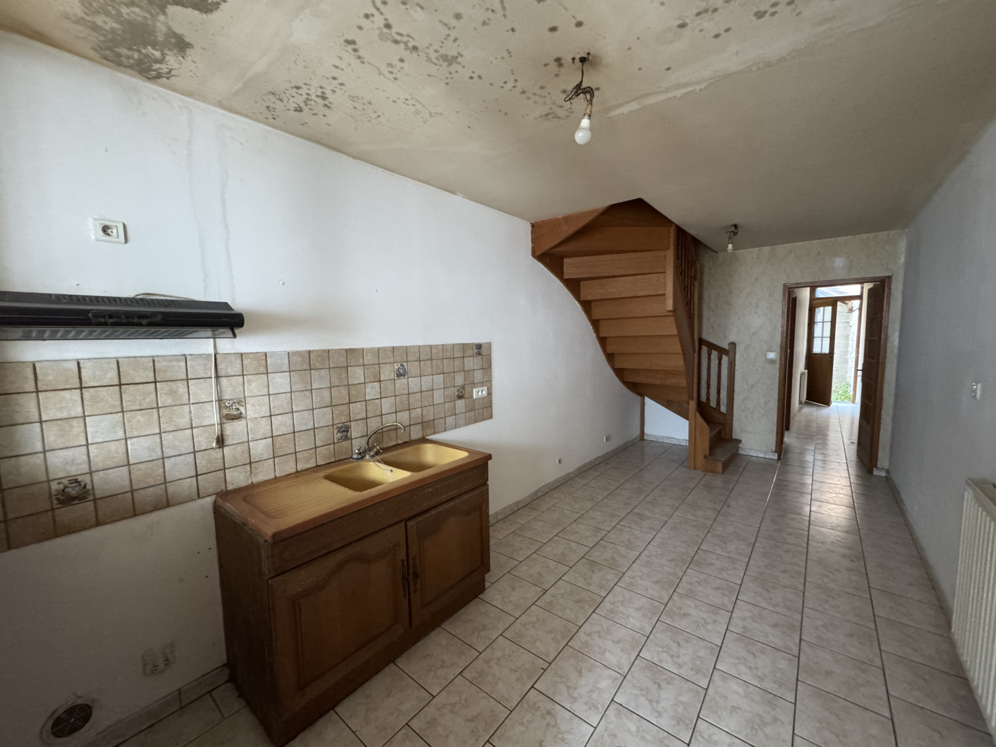 Maison de ville de 86m2 à rénover, avec tout le charme de l'ancien avec ces poutres apparentes, son escalier en bois en colimaçon et ses parquets d'origine, qui se compose au rez-de-chaussée d'une cuisine, un séjour de 23m2 et une salle de bains...